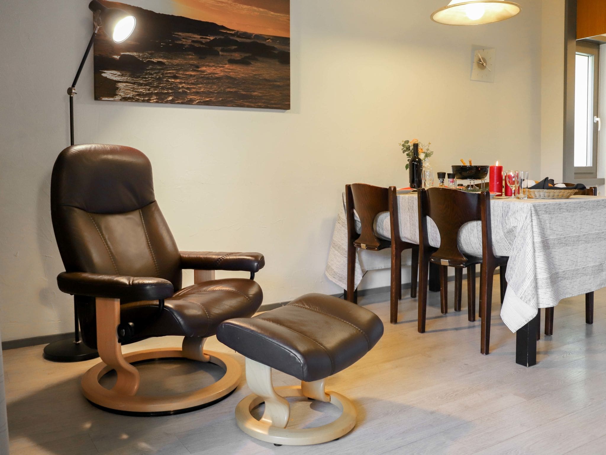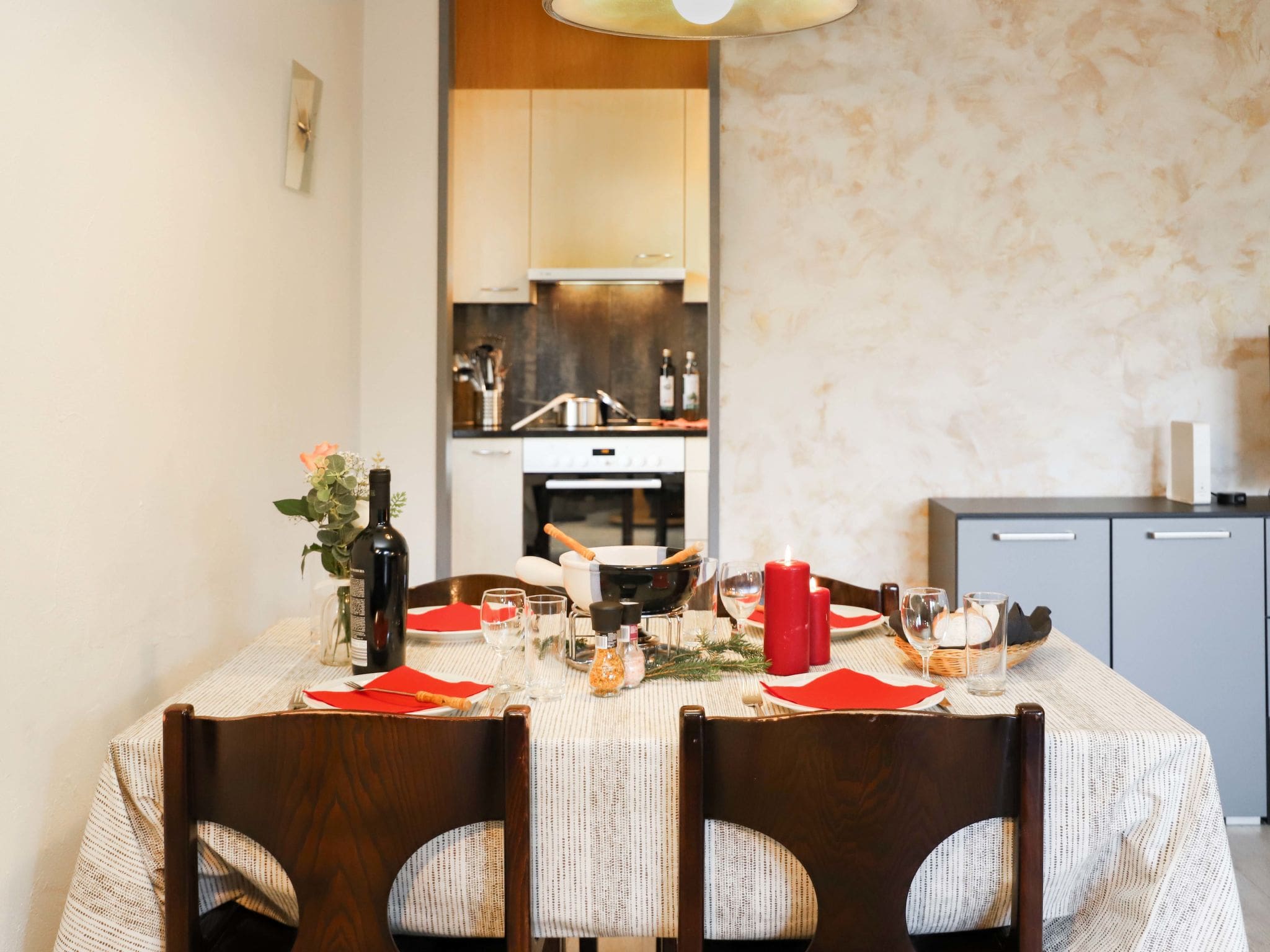 The modern kitchen comes fully equipped for preparing everything from quick mountain breakfasts to elaborate fondue evenings, complete with ceramic hob, oven, dishwasher, and even a dedicated raclette grill. The bathroom features efficient fixtures including a bathtub perfect for soaking after active days in the mountains. Throughout the apartment, practical touches like double-glazed windows, LED lighting, and reliable WiFi ensure comfort while maintaining environmental consciousness.