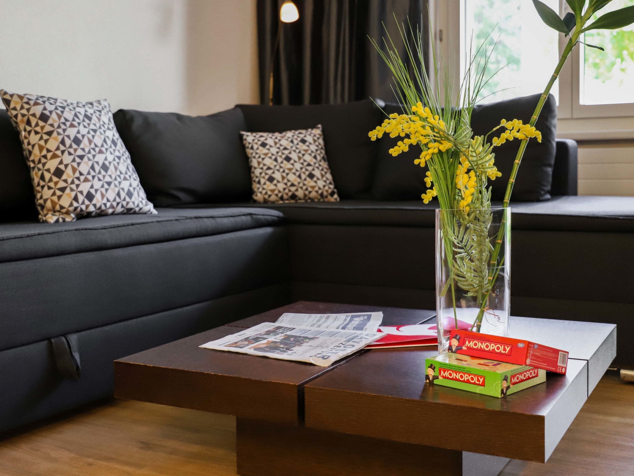 Step into a contemporary mountain retreat where Swiss design meets modern convenience. The open-plan living and dining area creates a welcoming space for relaxation, featuring a comfortable double sofa bed and entertainment system with cable TV and flat-screen display. Large windows flood the interior with natural light while double-glazed construction ensures year-round comfort. The separate bedroom provides peaceful rest with twin beds that can be configured as a double, while the fully equipped kitchen includes premium appliances from oven to Nespresso coffee machine. The bathroom features both bathtub and efficient shower facilities, with double basins adding convenience for groups. Throughout the apartment, thoughtful details like LED lighting and renewable electricity demonstrate the property’s commitment to sustainable luxury.