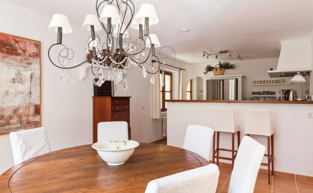 Outside there is a glorious shady terrace leading straight from the villa with more comfy outdoor furniture and a lovely al-fresco dining area overlooking the swimming pool. Steps lead down to the pretty gardens and a swimming pool, which can be gated off if needed. The pool is in a perfect spot for cooling down after basking in the Mallorcan sunshine, you are surrounded by beautiful old olive trees so typical of this area. Sun-loungers by the pool mean that it will be hard to leave this garden of paradise.