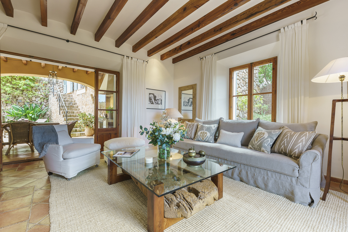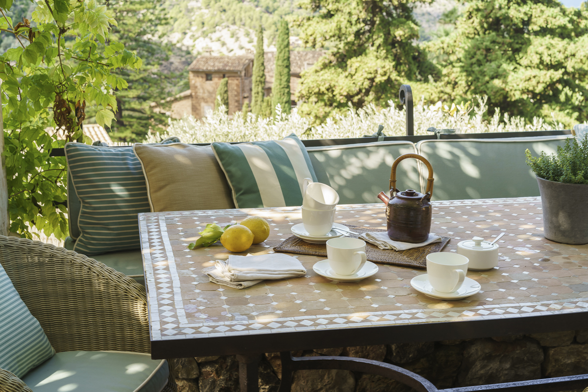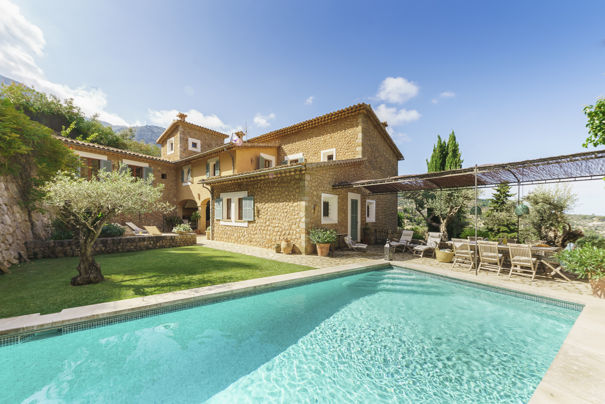 On warm summery days it will be hard to tear yourself away from the beautiful gardens with olive and palm trees, fruit and cypress trees and bougainvillea. Breakfast can be taken on the back loggia, enjoying freshly squeezed juice from the Mallorcan orange groves. The swimming pool terrace has a delightful pergola with a dining table, lovely for a relaxed poolside lunch. The wisteria covered pergola at the front of the villa is ideal for an evening drink or dinner enjoying the wonderful views of Deia village.