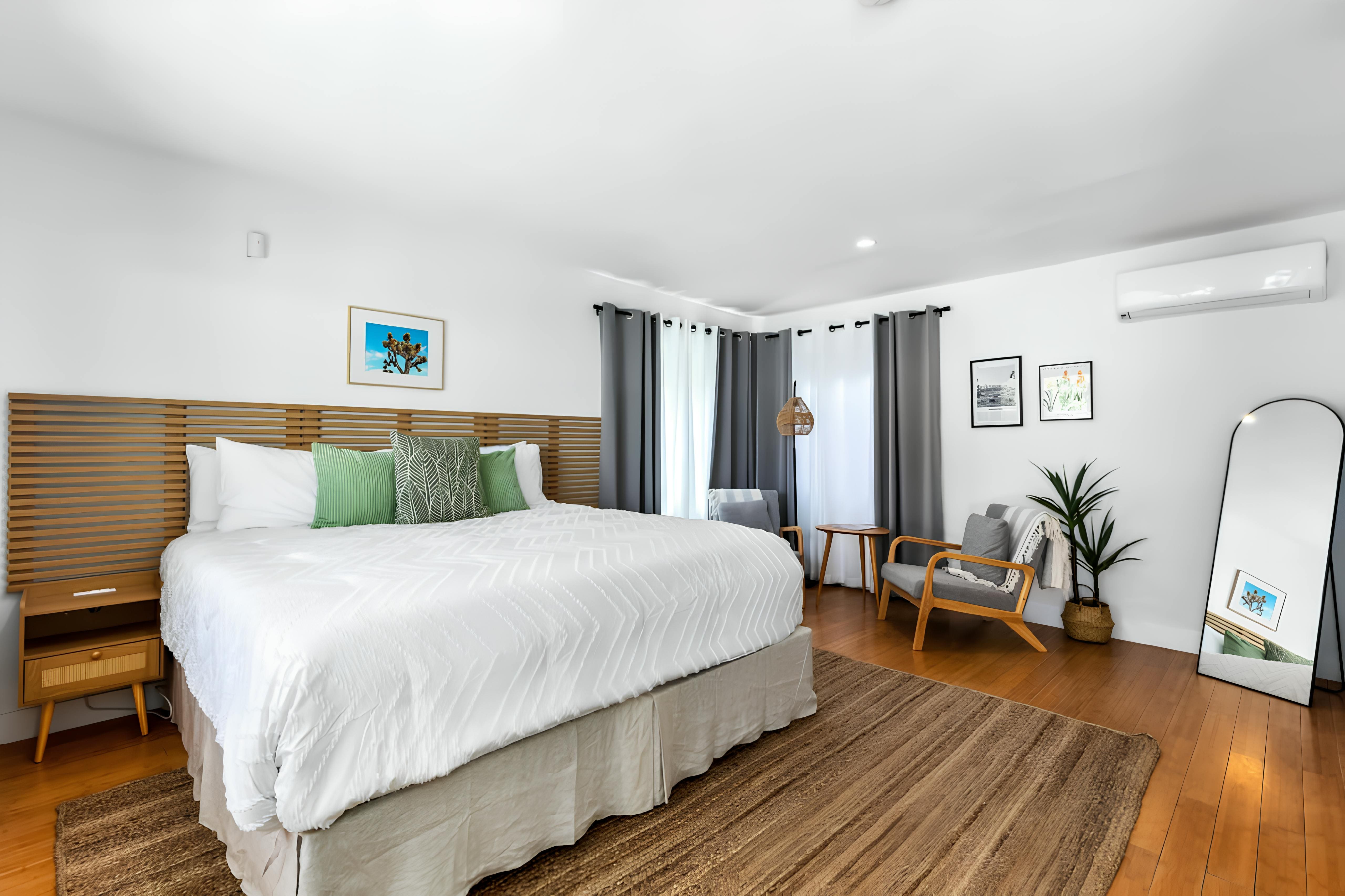 Step into the elegantly designed interior of this luxury house, where spaciousness meets style. The main house features a large, modern kitchen, perfect for preparing gourmet meals, and a comfortable living area that invites you to unwind. Three of the bedrooms are located in the main house, including one with a private balcony overlooking the lush courtyard. Complementing the main house are five separate suites, each equipped with laundry facilities or kitchenettes, providing privacy and convenience for all guests.