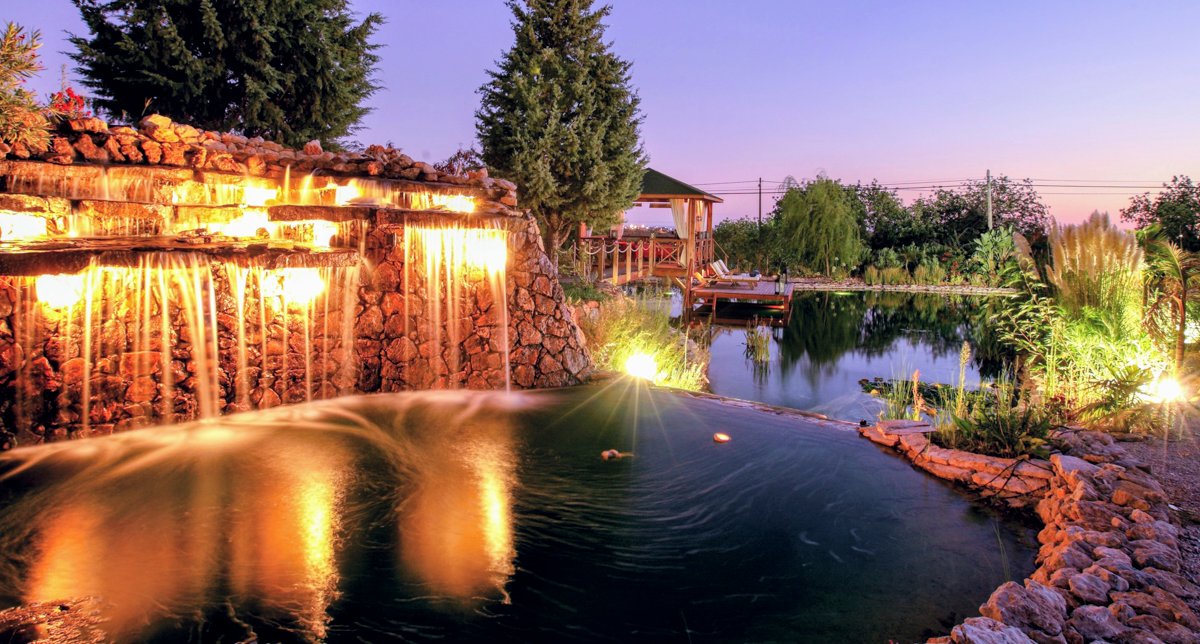 The grounds are superb. You even get your own 9 hole par 3 golf course, a golf practice area, extensive colourful gardens with two lakes and two waterfalls, a sandy beach, gazebo and wooden deck by the Pine Lake, rockpools, water steps, lily ponds, water jets, a Koi pond and extensive pathways and walking trails. There are stunning picnic spots by the lakes and amongst the greenery. The lakes are incredible with the Pine Lake used for fishing fresh water trout, swimming, windsurfing, standup paddle boarding, snorkeling and canoeing. The spa is next to the Koi Lake with fabulous views. The estate is beautifully lit up at night.