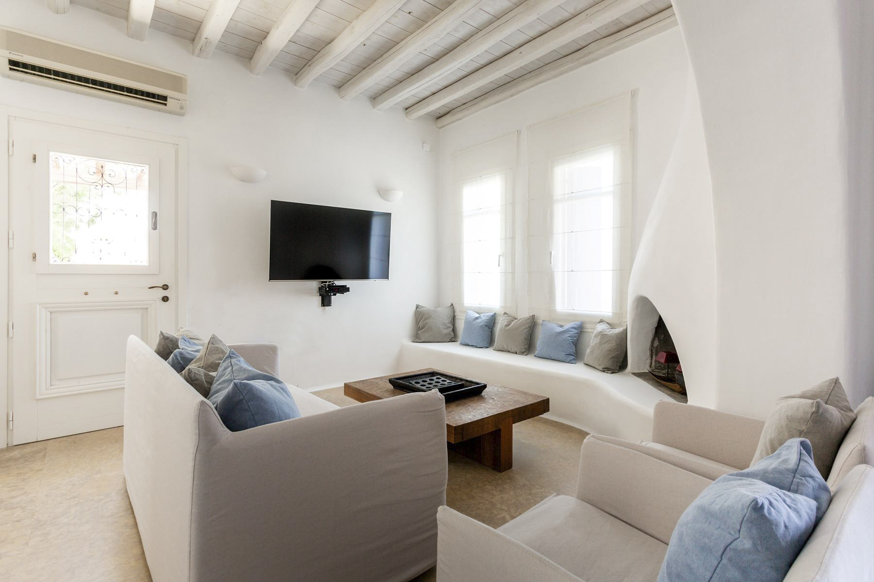 Set in a secluded setting, this villa is private, and is part of a complex – so you can still benefit from the lush gardens, 24/7 security and dock and sea access. Stepping outside, your own infinity pool has the edge when it comes to the best view, but surroundings look equally delightful from the sun terrace. There’s both prime sunbathing spots and places for you sit and relax in the shade.Inside, you’ll find a restful, open-plan living area with comfortable cream sofas, a traditional Greek fireplace and a flat-screen TV for entertainment evenings.