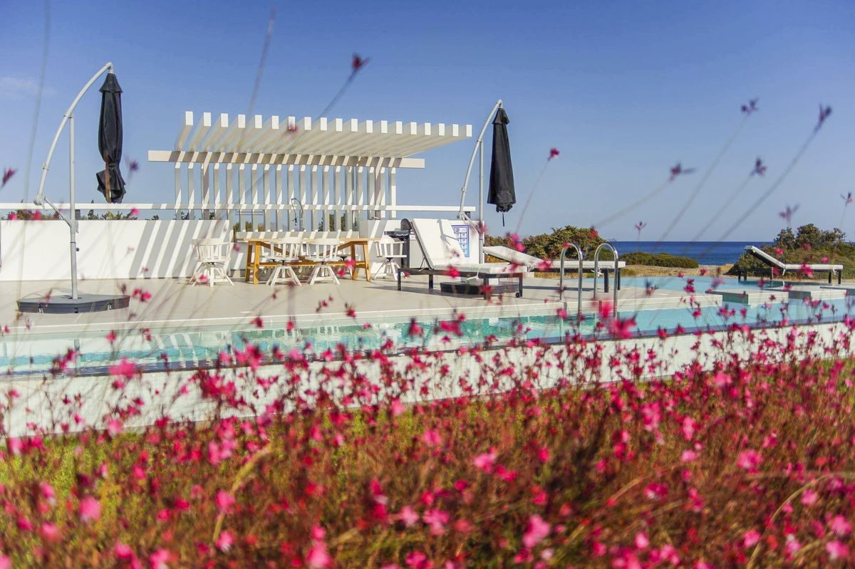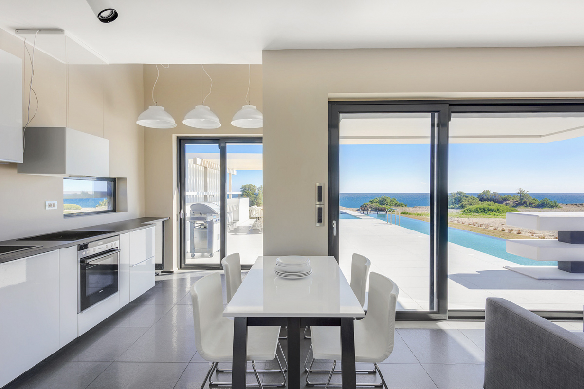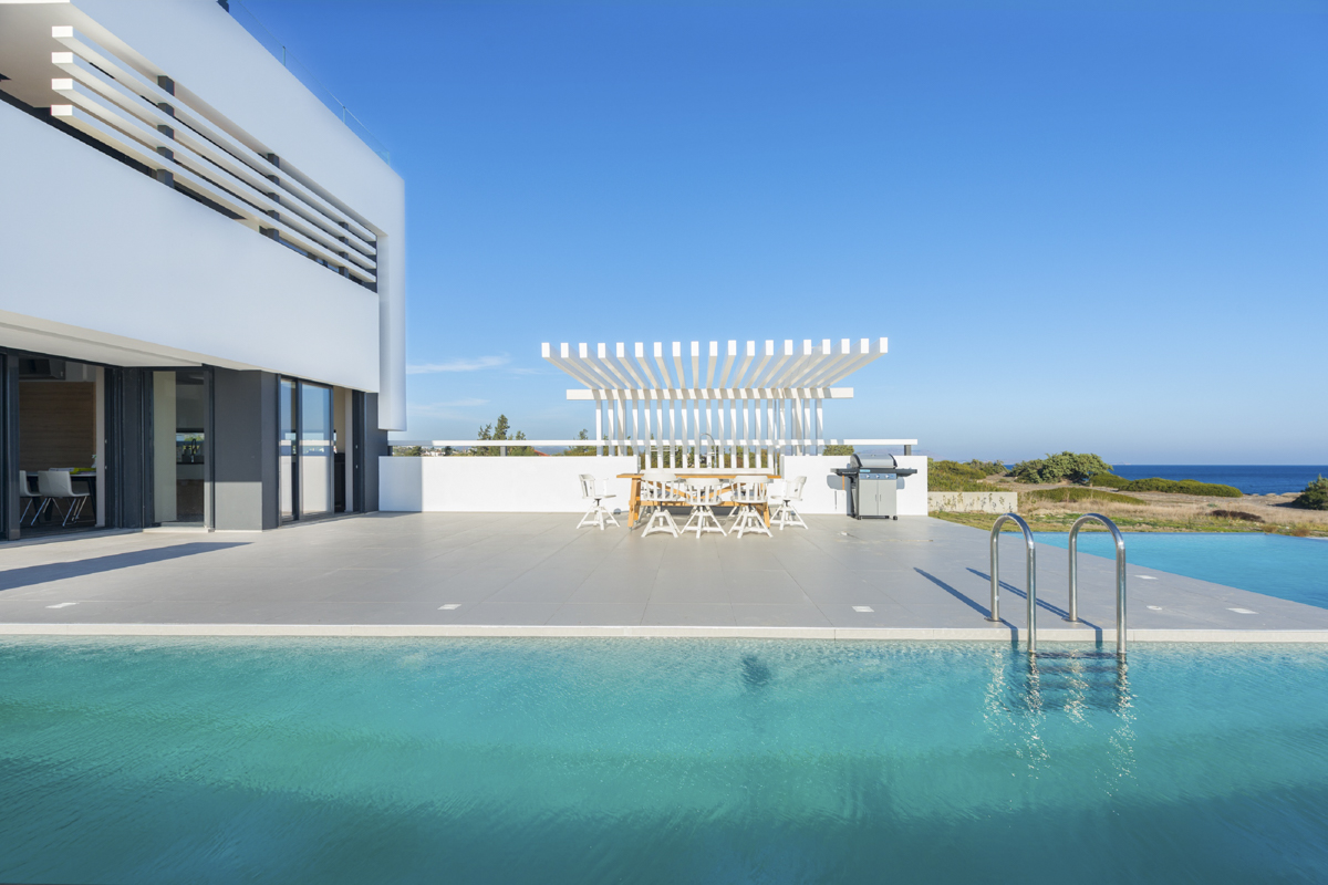 A modern villa for eight with a gorgeous Aegean Sea view. Villa Pindar is located on the beach close to Gennadi village on the south-eastern coast of Rhodes, just a few steps from the sea. With a large, salt water pool, it’s the perfect place for a medium-sized group to enjoy this tranquil part of the island.