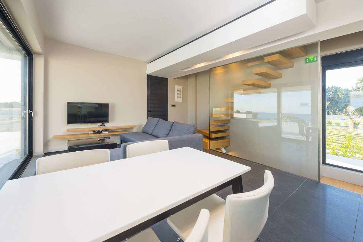 A large terrace provides a panoramic sea view and has a barbecue and dining area which is the ideal setting for a meal with friends. Sun loungers with parasols let you enjoy the reliably sunny climate that Rhodes is known for.The villa is architecturally striking and serves as an eye-catching backdrop to your time on the terrace. Inside, it’s equally contemporary, with a spacious living room equipped with a large flatscreen TV, a big, comfortable sofa you can really stretch out on and a games room with games console.