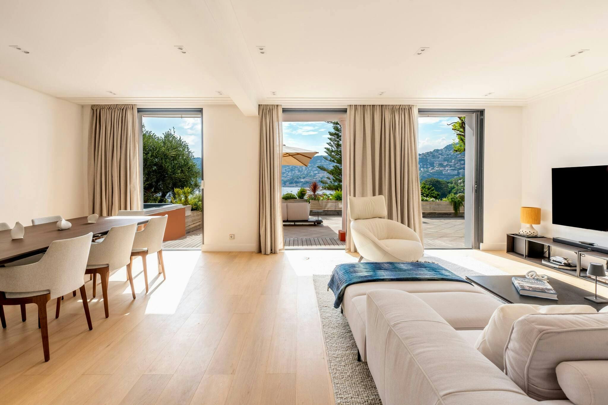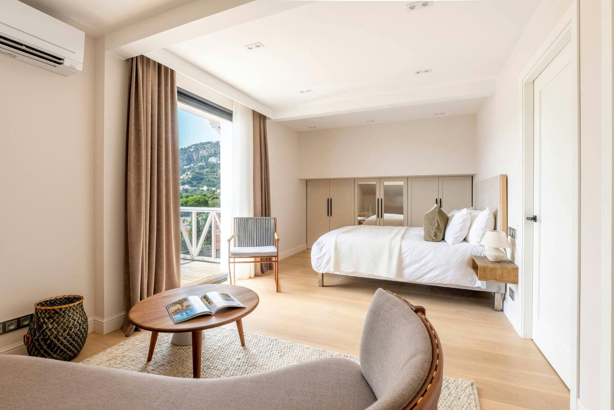 Step inside and discover an elegantly designed interior that perfectly blends modern style with classic French charm. The villa features four spacious bedrooms, each thoughtfully decorated to provide a serene retreat. The master suite boasts a private balcony with panoramic views of the Mediterranean, while the open-plan living area is ideal for entertaining. A fully equipped kitchen offers everything you need to prepare gourmet meals, and the luxurious bathrooms come complete with complimentary toiletries.
