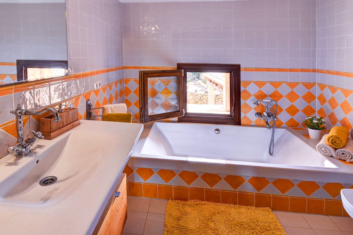 Upon entering the ground floor to the incredible open plan living areas you’ll see that the only thing more impressive than the attention to detail and fabulous character of the property is the range of options to relax! From cosy sofas to great reading chairs and a gorgeous wooden dining table with wide benches, everyone can find their calm space in this beautiful villa. And the options don’t stop here, upon making your way upstairs you’ll note yet another living space and a spot with another excellent sofa, this time wicker and complete with beautiful white cushions. Picture yourself settling in at the fabulous writing desk on the landing by the great open windows allowing a warm Mallorcan breeze to flow through the villa.