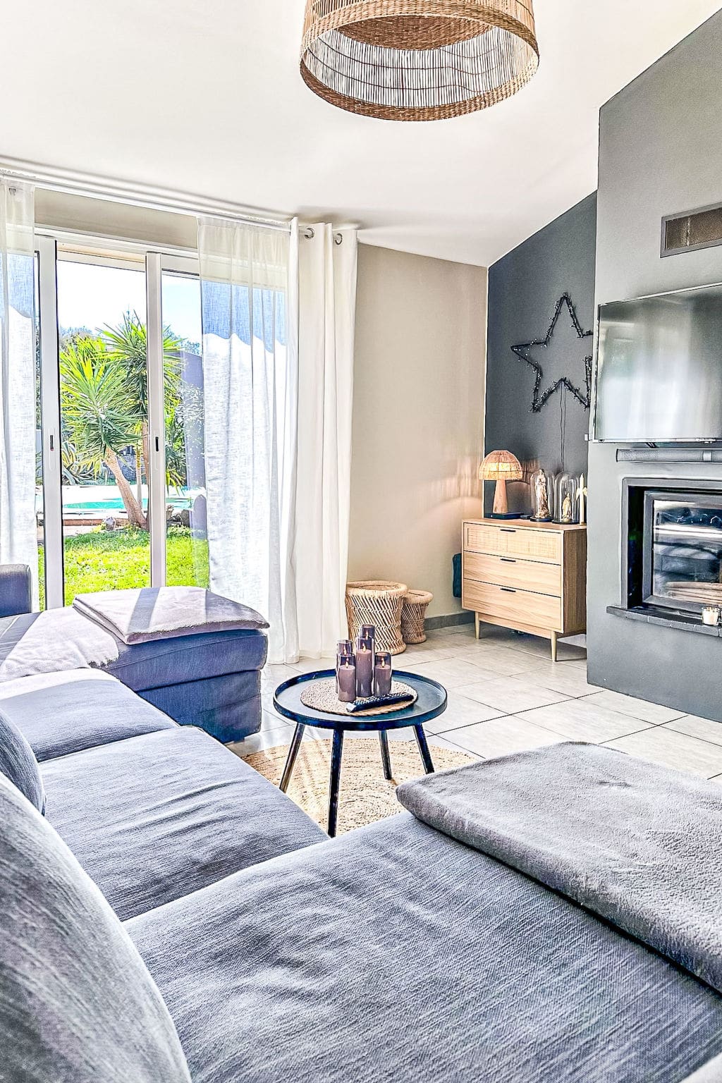 Spanning 160 square metres across a single level, this thoughtfully designed villa combines modern amenities with comfortable living spaces. The heart of the home features a magnificent 50-square-metre open-plan living and dining area, complete with a decorative fireplace and flat-screen television. French doors open directly onto the terrace, creating seamless indoor-outdoor living perfect for Corsican summers.