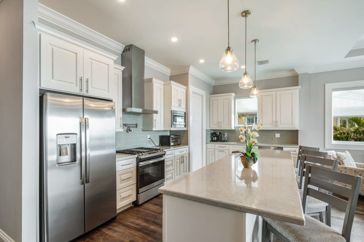 Accommodating up to 10 guests, the villa offers four bedrooms and four bathrooms. Additional sleeping arrangements include a sofa bed in the living area. Guests enjoy complimentary access to a nearby gym, and there is free parking for up to four cars and a boat trailer. Please note, the home is elevated and accessible via stairs only. Pets are welcome. Browse our luxury villa rentals in United States for more properties.