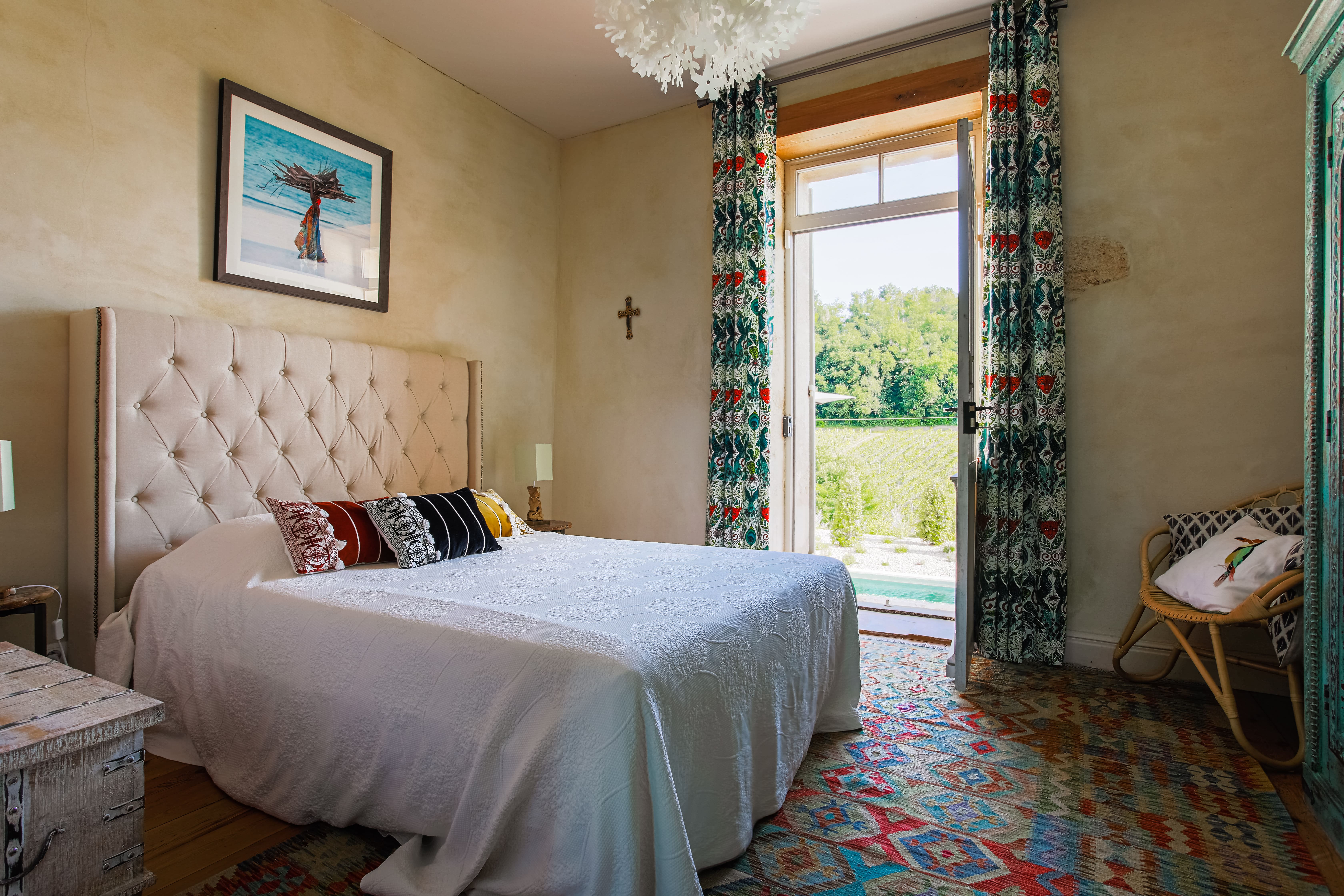 The villa comfortably accommodates up to 14 guests across seven bedrooms and three bathrooms. Parking is available on-site, and we recommend hiring a car for convenience. One well-behaved dog is welcome. The pool is unfenced, so supervision is required for young children. For more options, browse our luxury villa rentals in France.