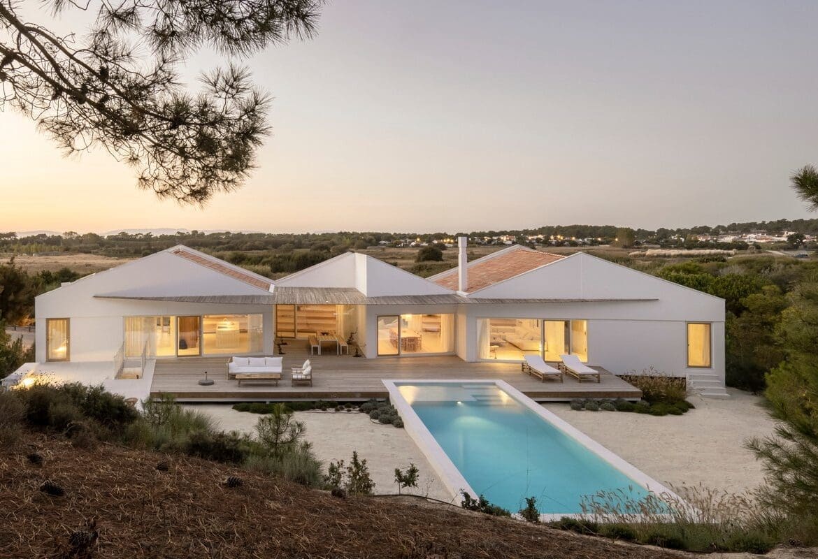 The ultra stylish Comporta Beach Lux is a luxurious holiday home designed by the renowned architect Joao Pedro Falcao de Campos. Paying homage to traditional Alentejo houses and boasting dazzling white walls, gable roofs and fabulous Estremoz marble stone, this minimalist wonder offers the wow factor to six or seven lucky guests. Dominated by strong lines, the architecture offers a bold, striking effect while sitting in a totally natural environment on the border of Comporta’s green flood plain and its sparkling, white sandy dunes. The dunes pass under the villa offering a beautiful dune garden.