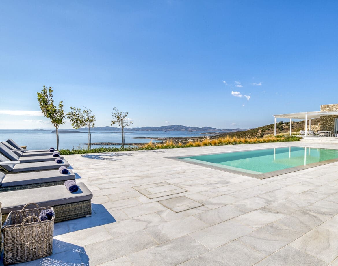 As the sun sets over the horizon, casting a warm glow over the villa, the charm of the location extends beyond its immediate surroundings. Paros, known for its Cycladic charm, beckons exploration. The quaint village of Piso Livadi, with its traditional white-washed buildings and waterfront tavernas, is a short drive away, offering an authentic taste of Greek island life. Wander through its narrow streets, indulge in local delicacies, and absorb the laid-back atmosphere that defines Paros.