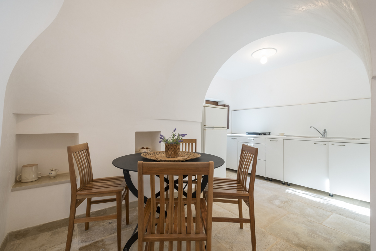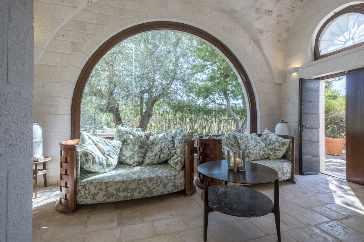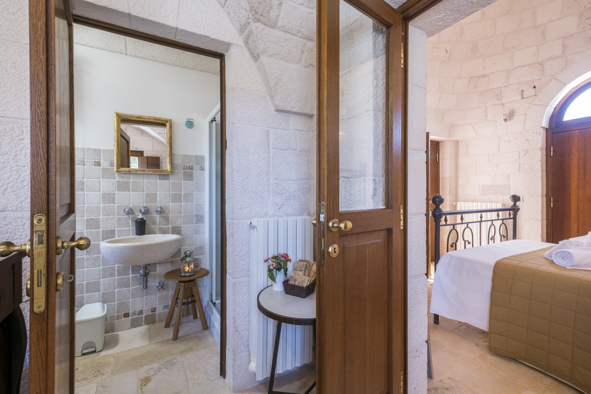 The Masseria itself is full of quality furnishings and has the highest degree of space and character. There’s a sweepingly large, luminous lounge/dining room with exposed vaulted stone ceilings, a reading room with open fire and a separate fully equipped professional kitchen/diner and a twin washroom.