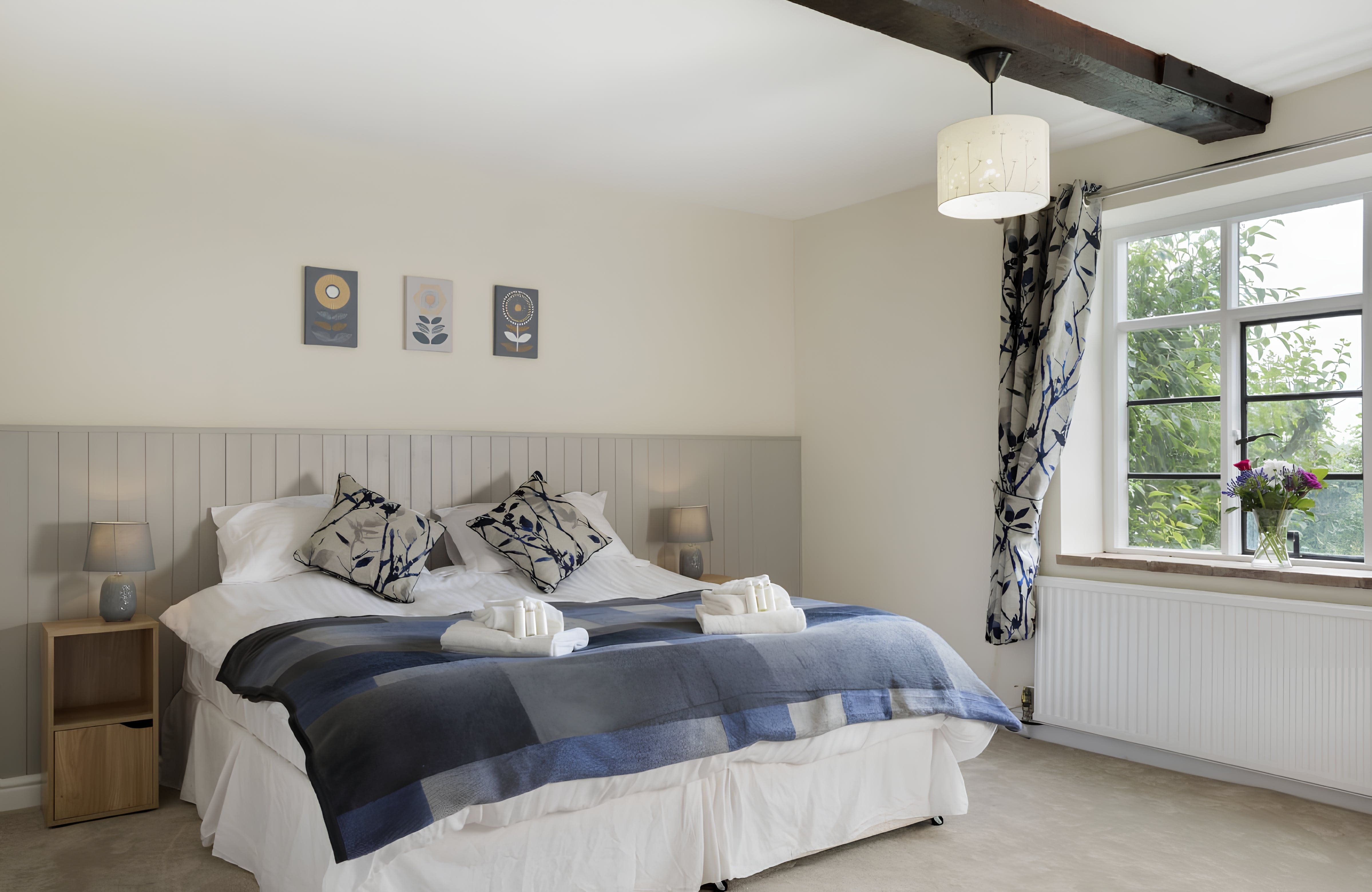 Step inside to discover six beautifully appointed bedrooms, each with its own en-suite bathroom, ensuring privacy and comfort for up to 12 guests. The interiors seamlessly blend period features like timber beams with contemporary amenities. The spacious living areas are perfect for gathering, while the fully-equipped kitchen is a culinary haven. Flexible sleeping arrangements allow for five super-king beds to be converted into singles upon request, catering to diverse group needs.