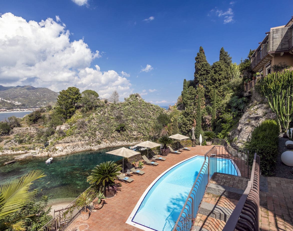 Perched on the sun-kissed shores of Taormina, Sicily, Villa Dionysius II offers an idyllic escape for discerning travellers seeking a slice of Mediterranean paradise. Situated just a stone’s throw away from the charming town of Taormina, guests are treated to the perfect blend of tranquillity and convenience. From its elevated position, the villa boasts uninterrupted views of the azure waters of the Mediterranean Sea, with the picturesque Bay of Mermaids beckoning just steps away. Taormina is a treasure trove of cultural delights, boasting ancient ruins, quaint cobblestone streets, and world-renowned cuisine. Visitors can explore the historic Greek Theatre, indulge in authentic Sicilian delicacies at local trattorias, or stroll along the scenic waterfront promenade. With its balmy climate, rich history, and stunning natural beauty, Taormina is a destination that captivates the senses and leaves a lasting impression on all who visit.