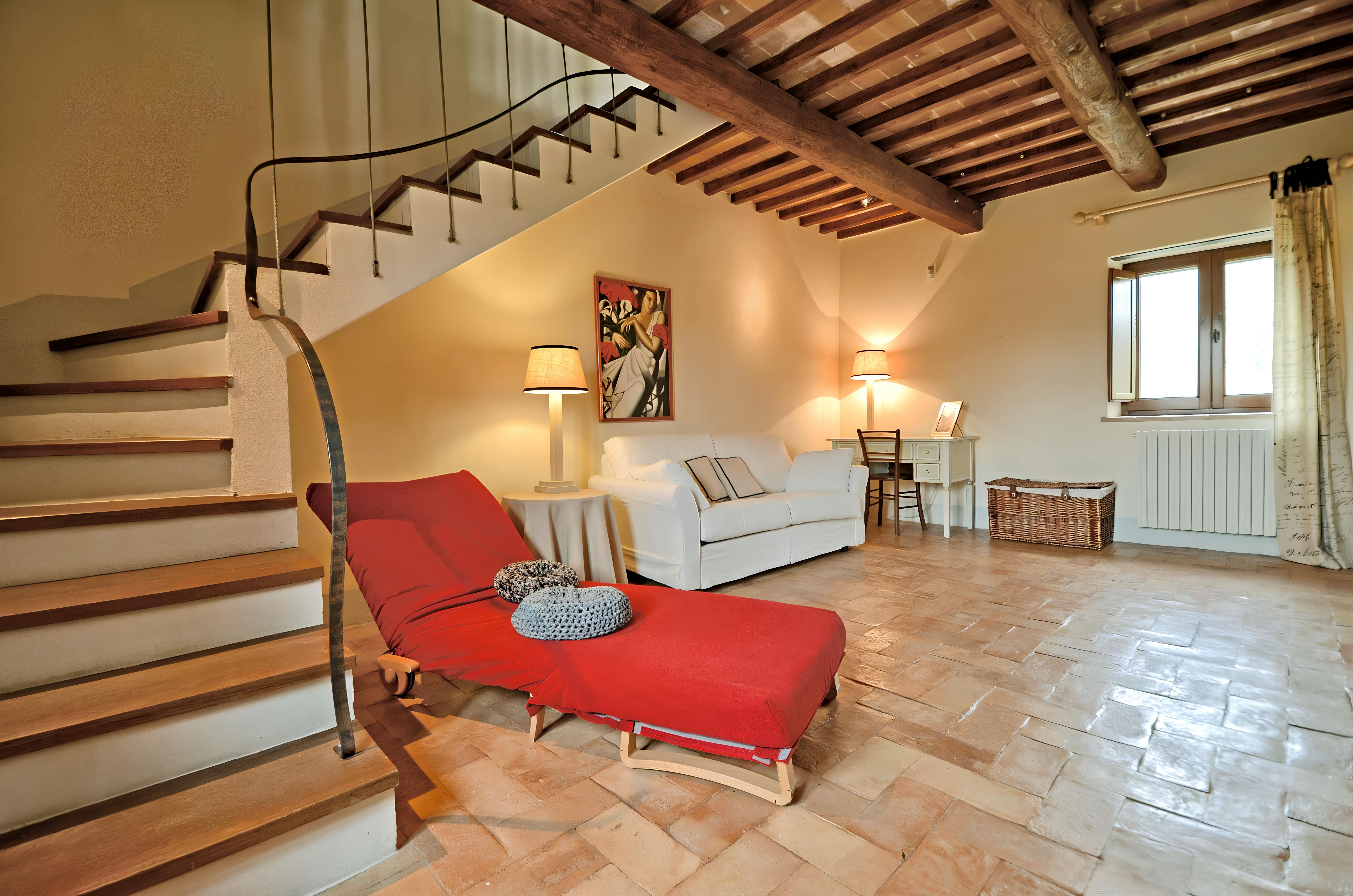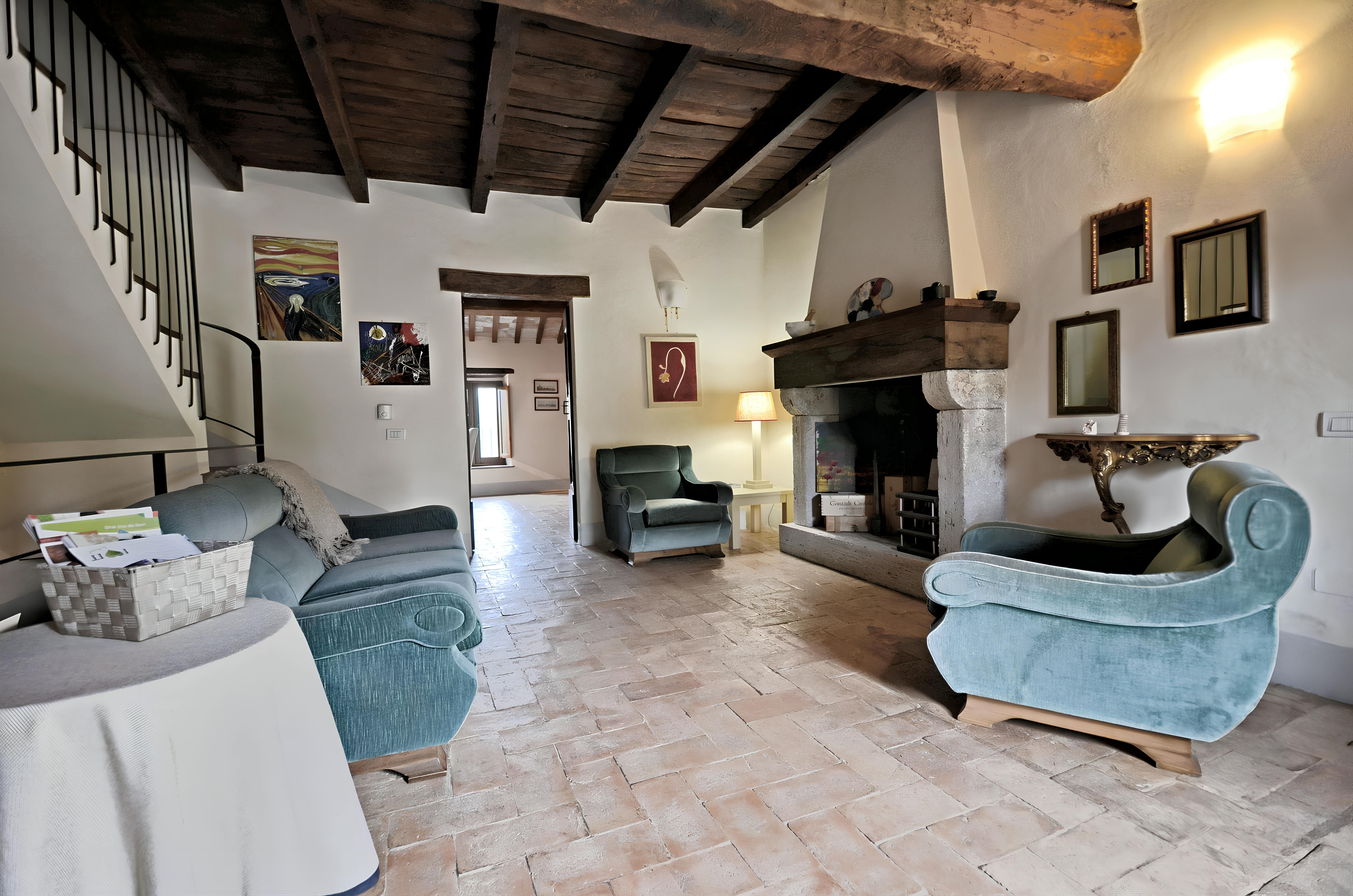 Outside, the villa’s private swimming pool, available between May and September, offers a refreshing escape from the summer heat. The garden and terraces provide the perfect setting for al fresco dining and sunset cocktails, surrounded by the serene beauty of Umbria’s forests and fields. A barbecue area invites you to enjoy delicious outdoor meals with family and friends.