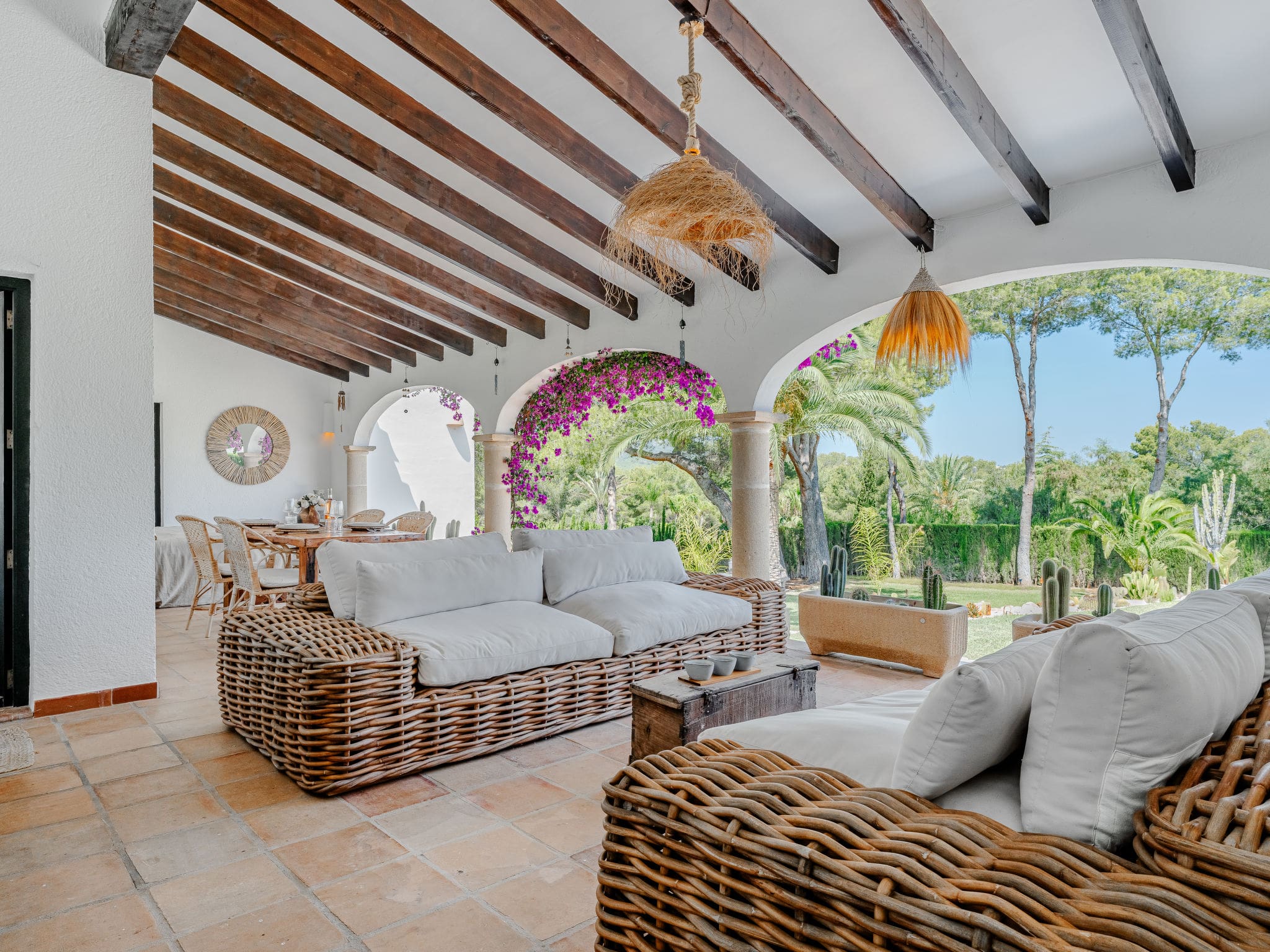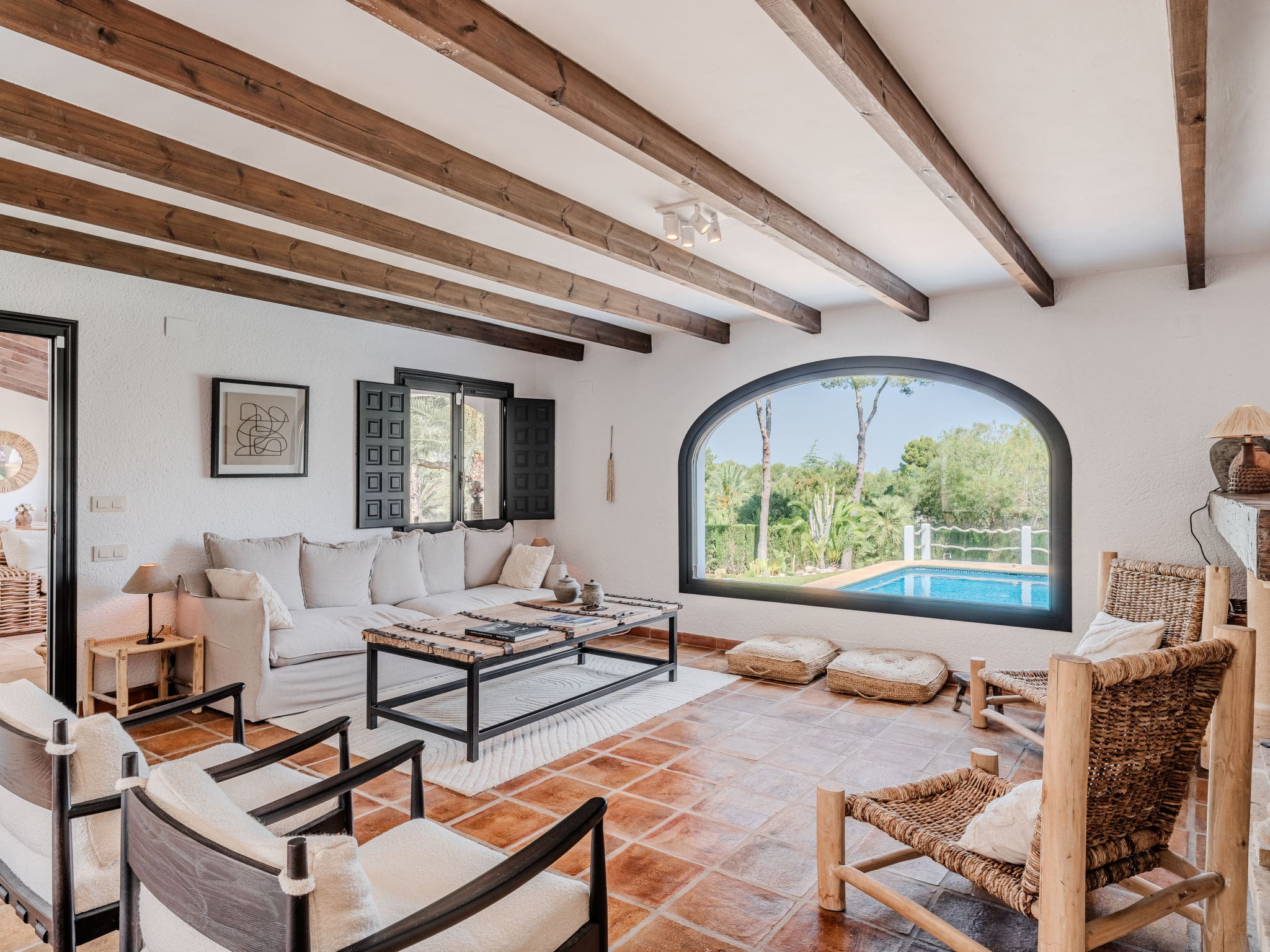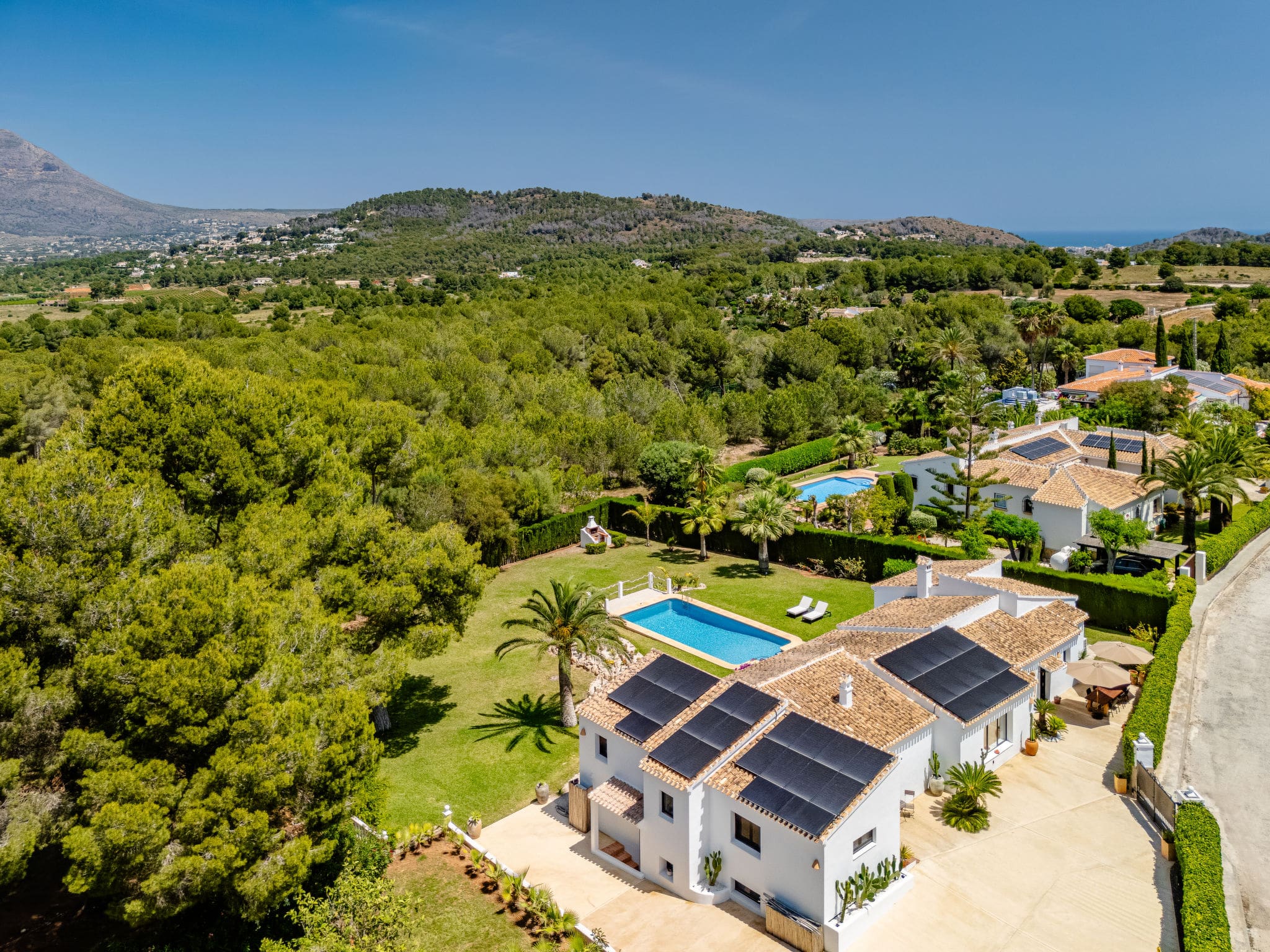 The villa sits approximately 5 kilometres from Jávea’s town centre and the popular El Arenal beach area, easily accessible by car.