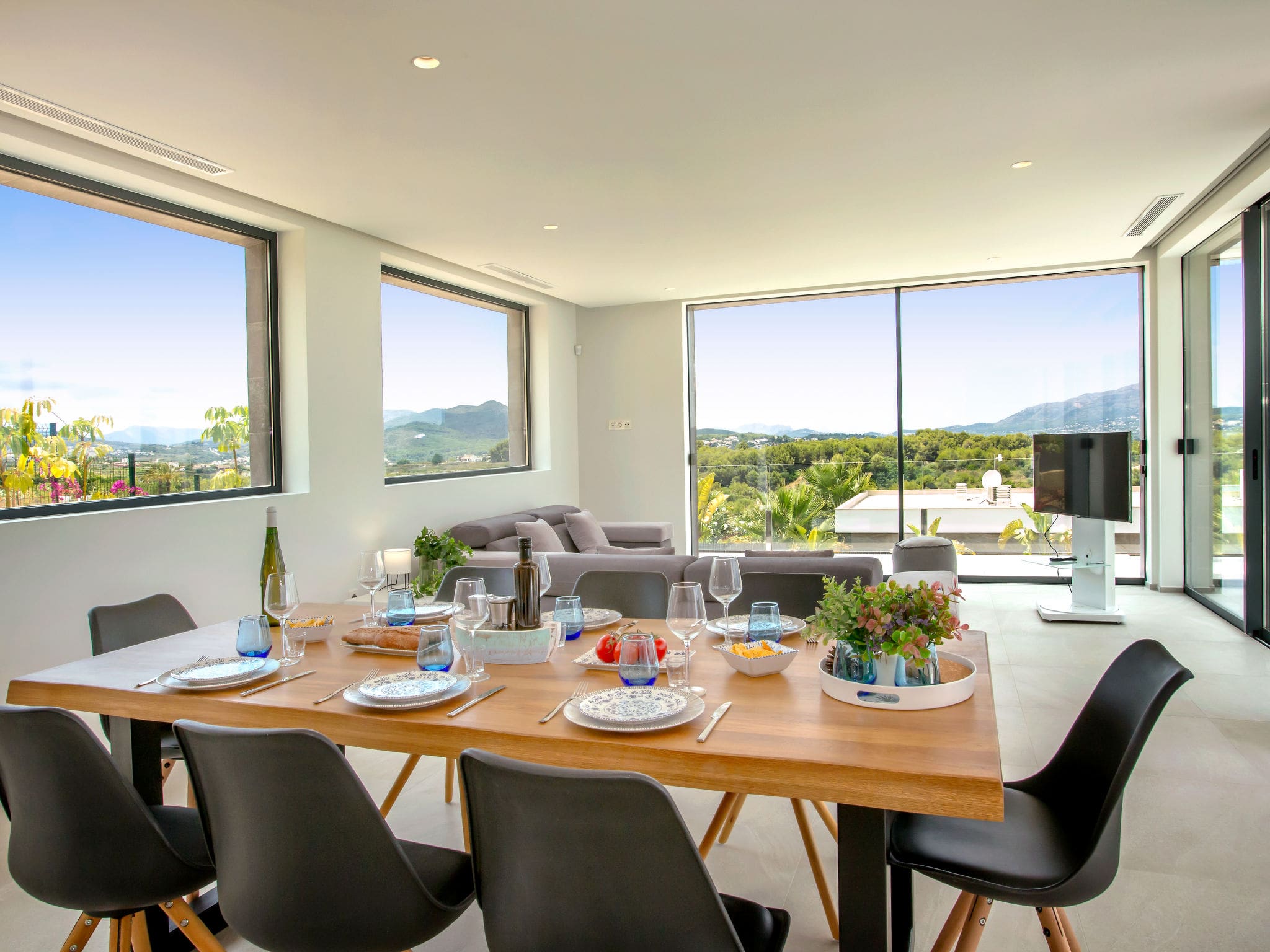 Experience the finest luxury villa rental Jávea has to offer at this stunning contemporary property, where modern sophistication meets Mediterranean charm across 250 square metres of elegant living space. Positioned in the prestigious Cansalades Park Monte Olimpo development, this remarkable four-bedroom villa commands breathtaking panoramic views of the sea, mountains and valley below, creating an unparalleled setting for an unforgettable Costa Blanca escape.