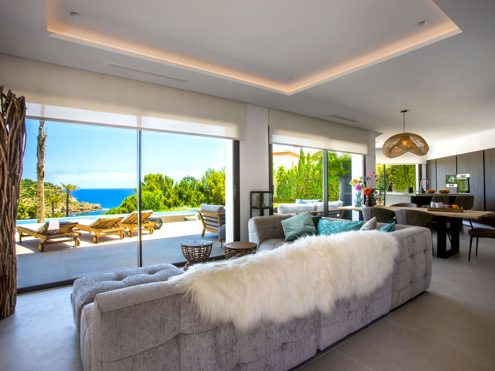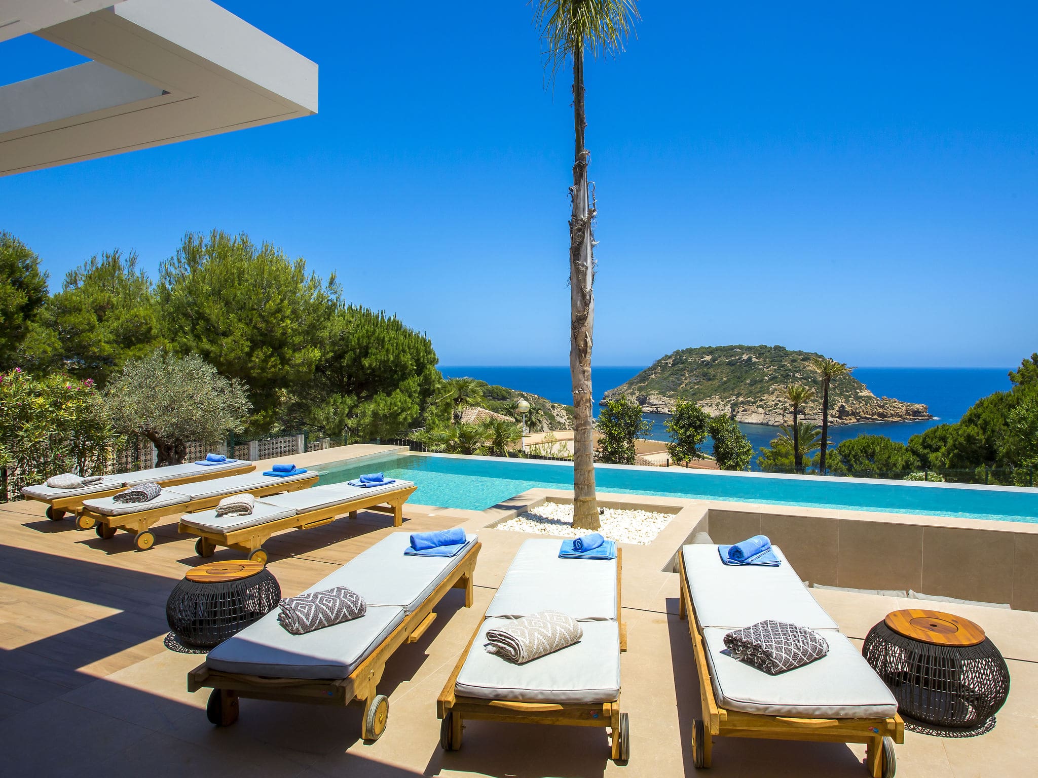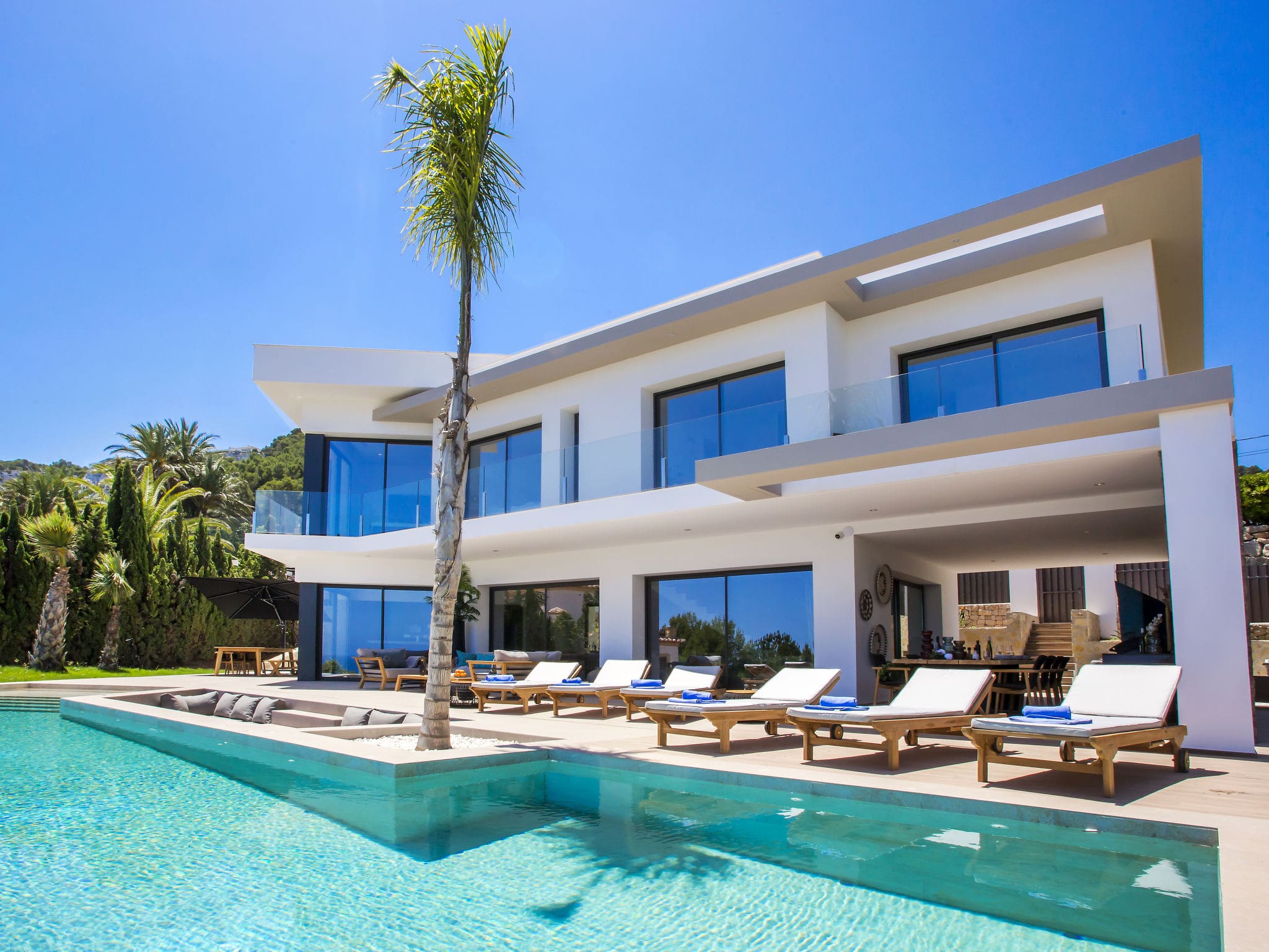 This luxury villa rental in Jávea Spain offers an exceptional retreat where contemporary design meets Mediterranean elegance. Built in 2021, this magnificent 4-bedroom property commands breathtaking panoramic sea views from its privileged position in the exclusive Mar Azul – Portitchol district, just 200 metres from the sparkling Mediterranean waters.