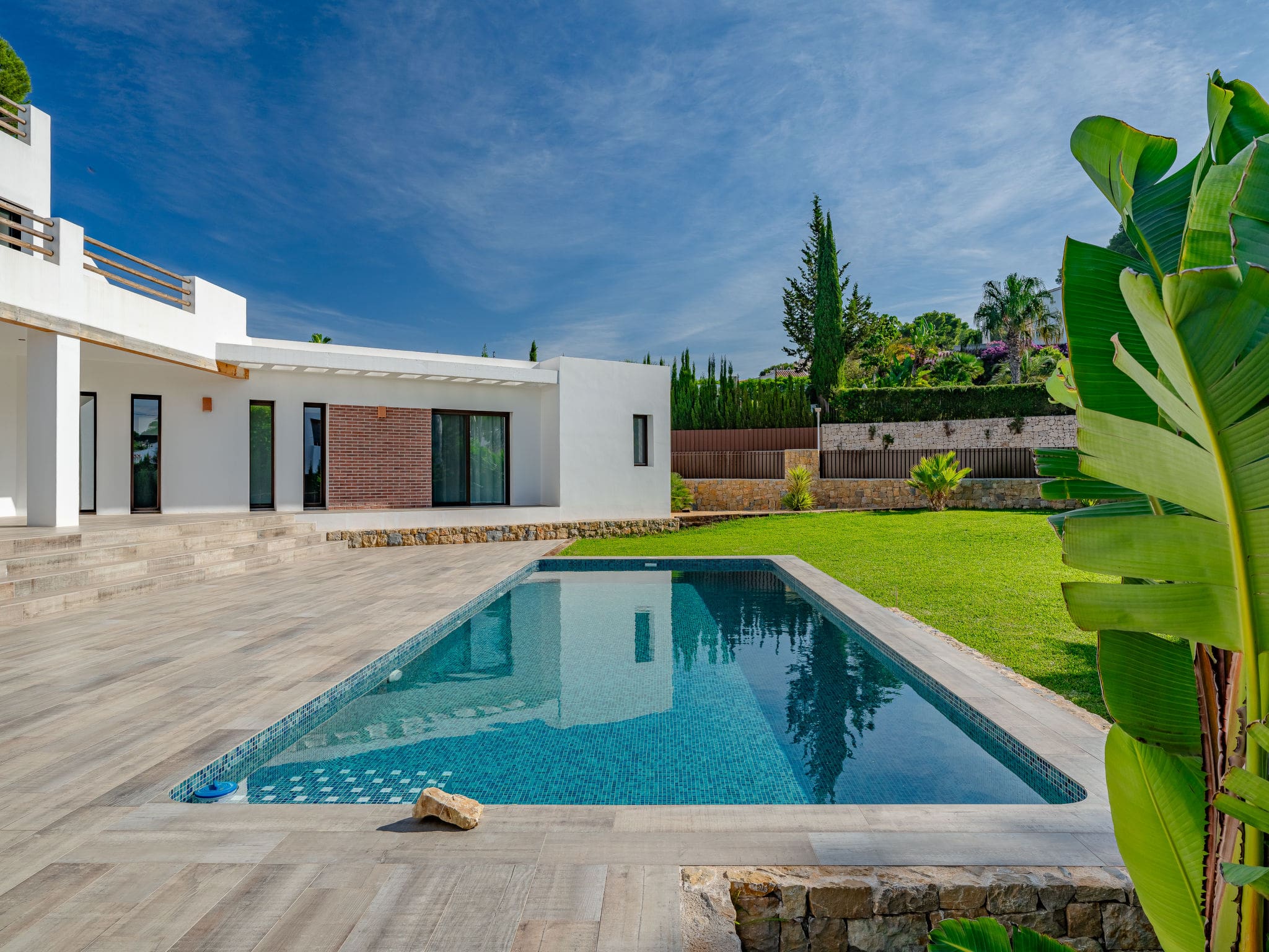 This luxury villa rental in Jávea, Spain offers the perfect coastal retreat just 250 metres from the pristine waters of Cala Blanca. Set in one of the Costa Blanca’s most sought-after destinations, this contemporary 250m² villa combines modern design with Mediterranean elegance, providing an idyllic base for exploring the dramatic coastline and charming town of Jávea.