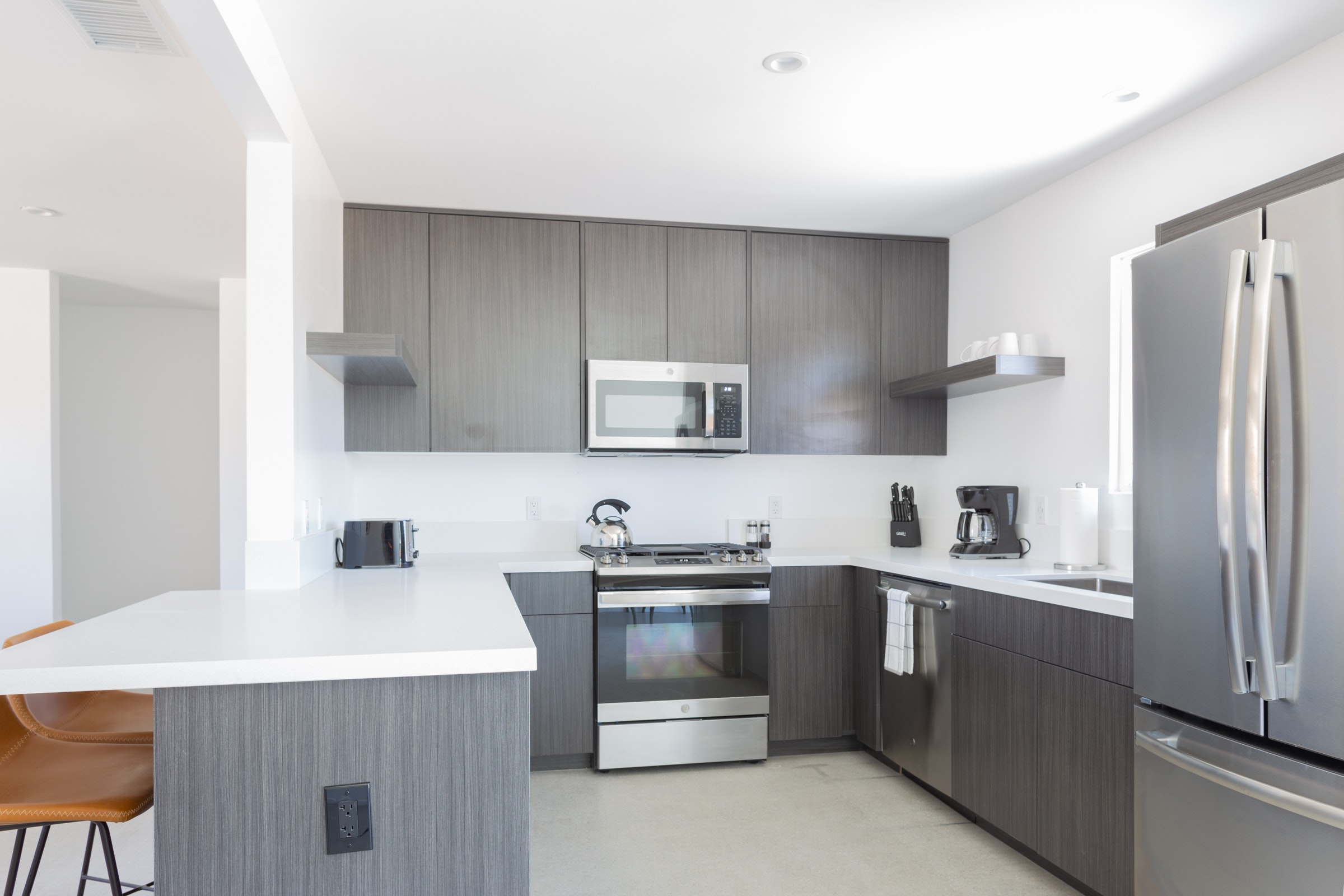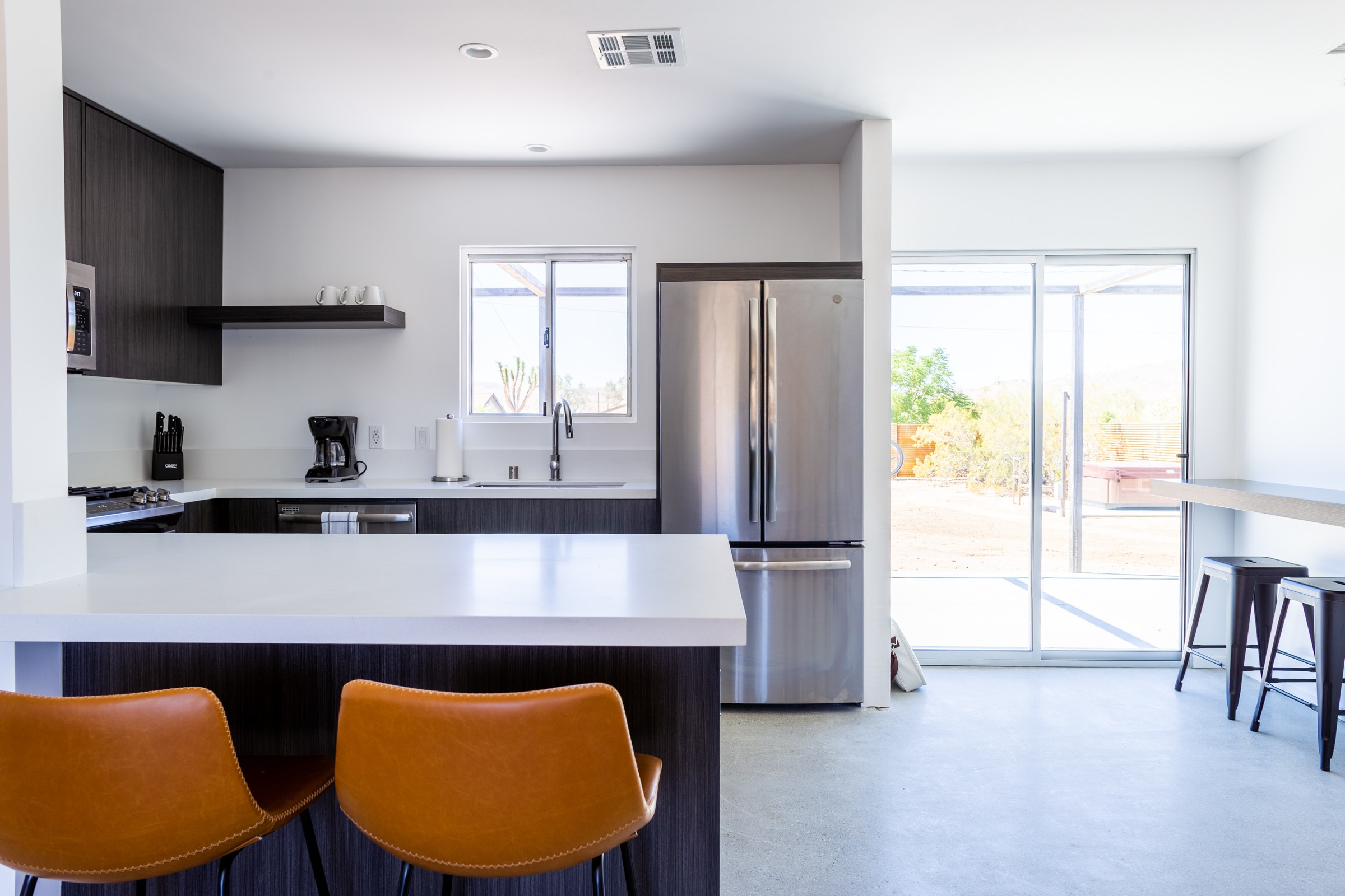 Private and unassuming, this home is perfectly positioned within walking distance of the Joshua Tree village and a short drive away from the west entrance to the national park. Modern and minimalist, this home has a warm and welcoming feel from the moment you step inside. Partake in a quiet game on your private bocce court before you head out to explore the nearby park’s trails, wildlife and otherworldly rock formations, then return to soothe aching muscles while admiring the wilderness views from the hot tub. The fire pit provides an ideal spot for alfresco dining or sipping cocktails as the sun sets. If you want to explore further afield, there’s no dearth of day trips from your home, with Palm Springs just a 40-minute journey away.