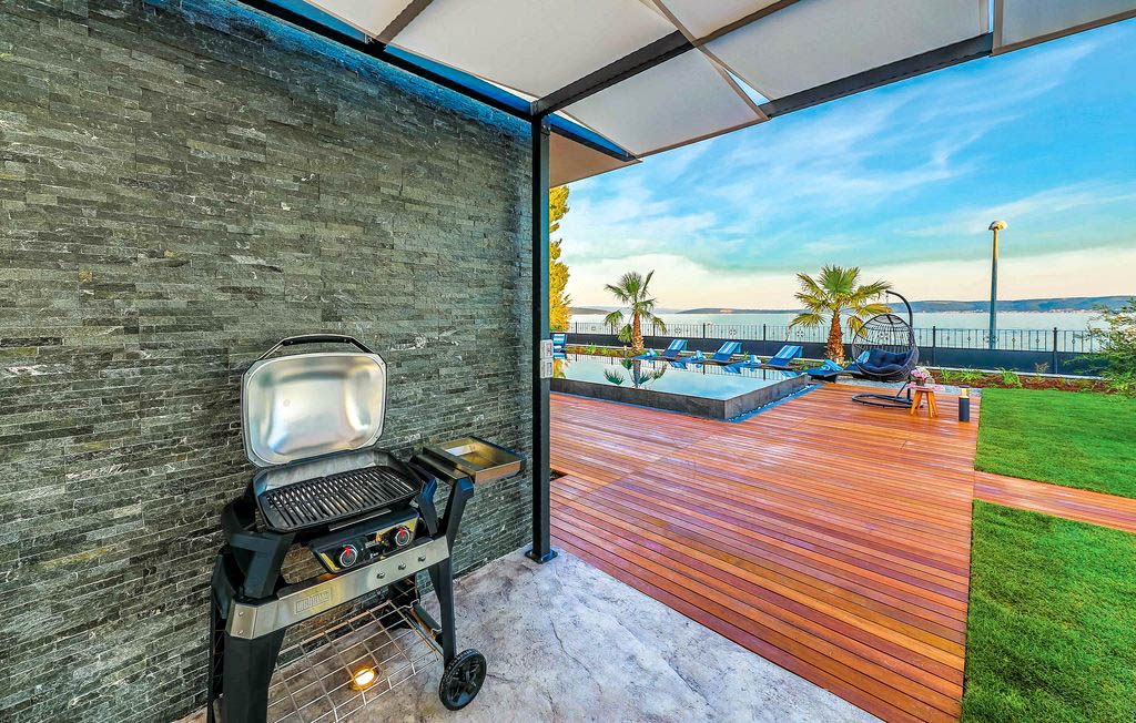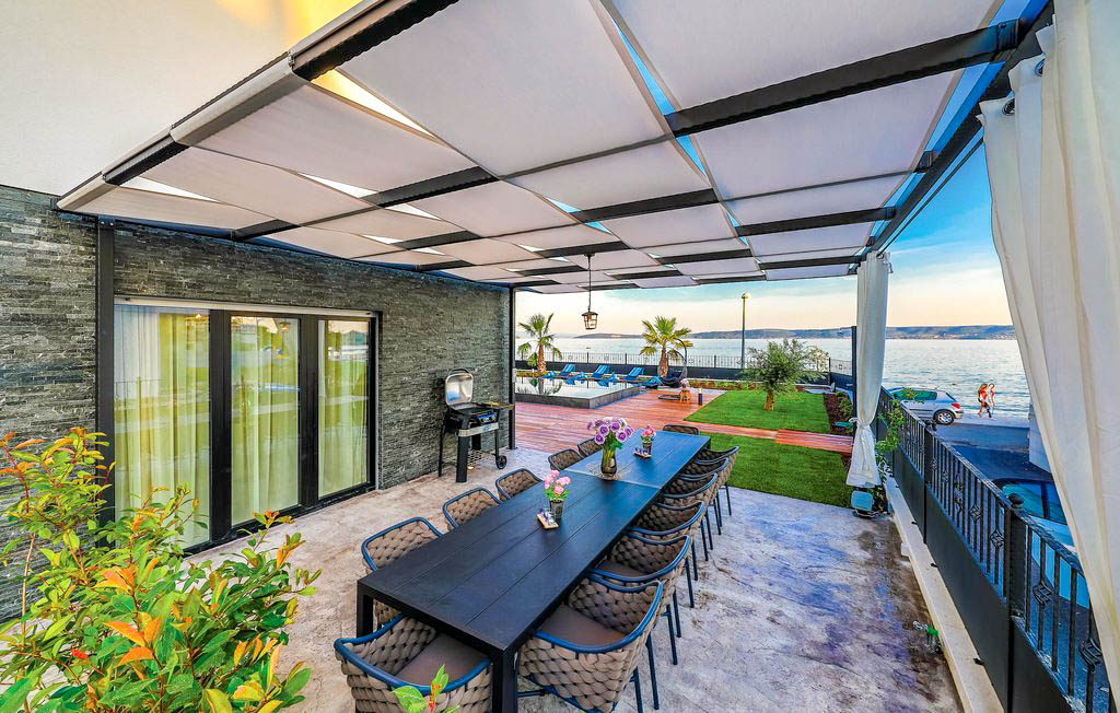 Your garden is certainly a highlight of this sublime property, with a huge, heated infinity pool stretching the width of it. With loungers all around it, this is the perfect place to soak up the sunshine in the most exquisite environment! There’s also a casual seating area here, and the jacuzzi is just to one side, with a swinging sofa pod to the other. The garden absolutely comes to life by night, as perfectly positioned lights flick on and warmly light the elegant space, creating an atmosphere of opportunity. Nestled right on the beachfront, in the quaint neighbourhood of Kaštel Stari, and only 15km from Split, Villa Frane is perfectly located to enjoy the highlights of a holiday in Croatia.