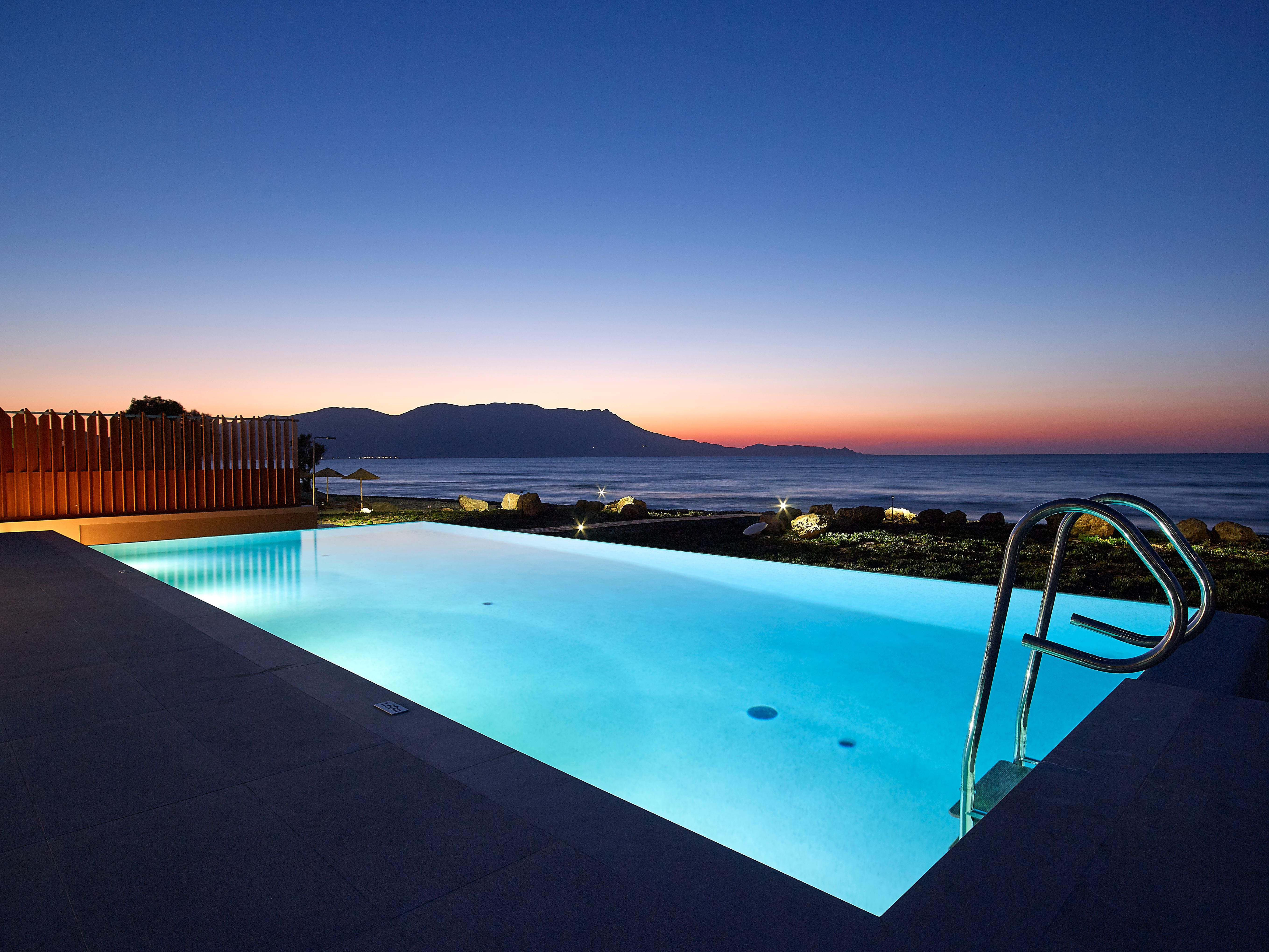 Outside, the private pool invites you to indulge in a leisurely swim against the backdrop of the endless sea. Expansive terraces provide the ideal setting for alfresco dining, with a shaded area perfect for enjoying a chilled glass of local wine. The beachfront location ensures that the soft sands of Kissamos Bay are just steps away, offering both convenience and tranquility.