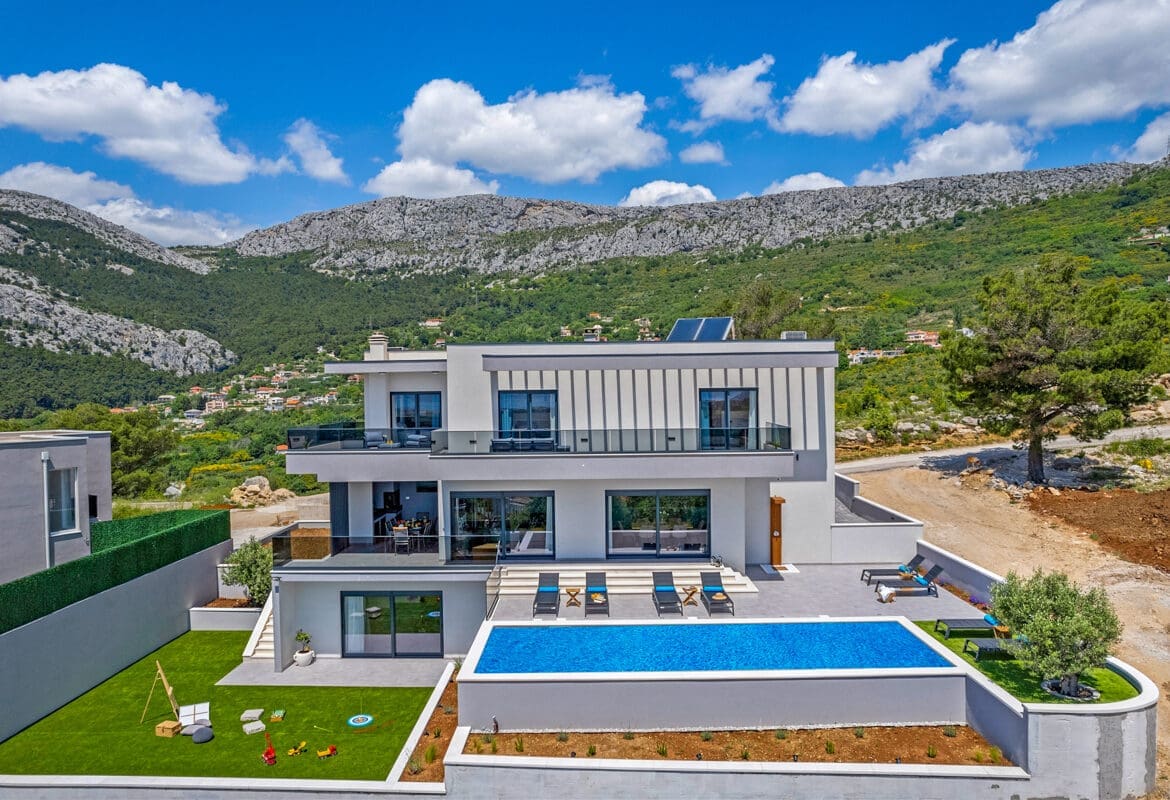Begin each morning with a refreshing dip in the villa’s private swimming pool before sipping a cup of coffee and unwinding on a sun lounger as you admire the breathtaking views of nearby Split and the Adriatic Sea. A garden with artificial grass on the lower ground floors provides plenty of space for family fun and games in the afternoon sunshine, while an outdoor shower by the pool offers you the chance to cool off at any moment you fancy. When evening comes, gather everyone to enjoy a delicious barbecue at Villa Flo’s covered outdoor dining area, complete with a modern summer kitchen, a Dalmatian grill and a flat-screen TV. The outdoor lounge on the first-floor balcony is the perfect place to take in the sunset as you enjoy a glass of excellent Croatian wine.