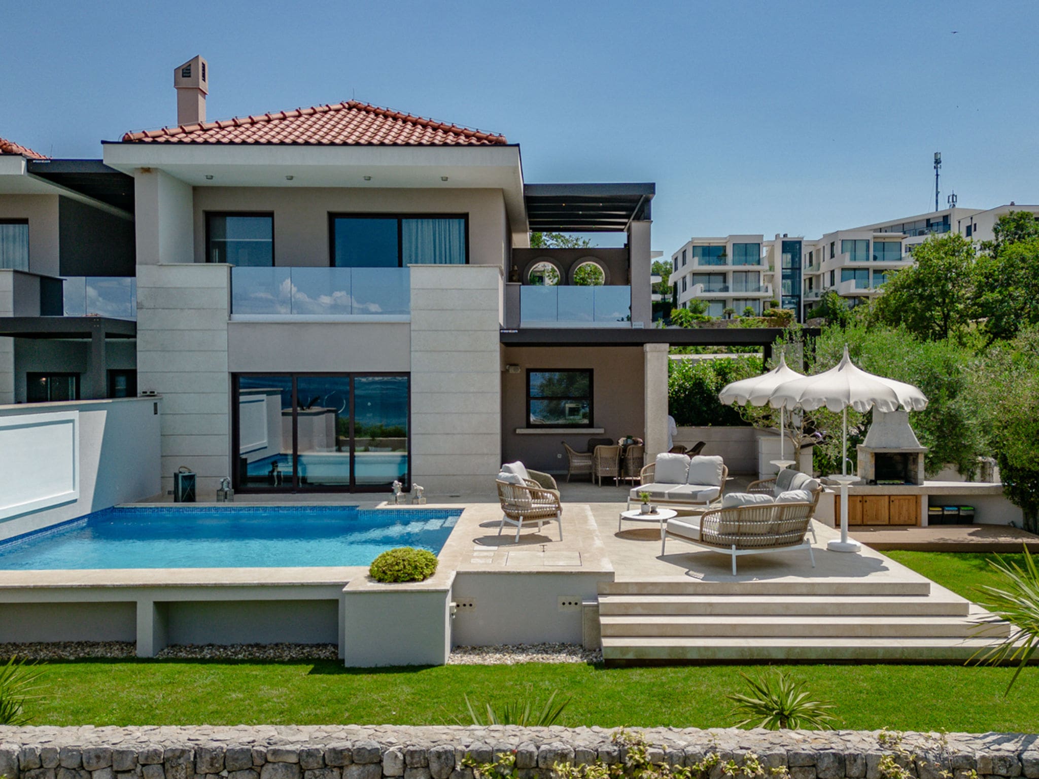 This luxury villa rental Krk offers the perfect escape to Croatia’s golden island, where azure waters meet Mediterranean charm in one of the Adriatic’s most coveted destinations. Located just minutes from Malinska’s pristine beaches, this sophisticated four-bedroom retreat combines contemporary comfort with stunning sea views across the Kvarner Gulf.