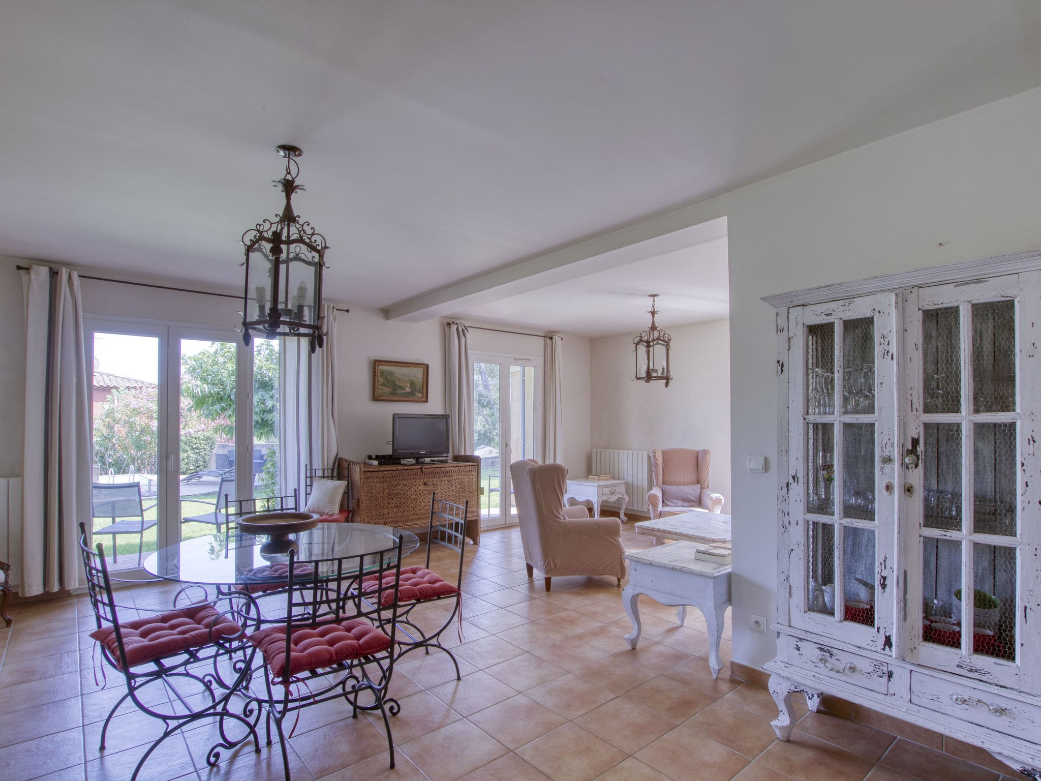 This beautifully appointed 125-square-metre villa unfolds across two thoughtfully designed levels, combining traditional Provençal character with contemporary comfort. The bright living and dining area features an open-hearth fireplace that creates a welcoming focal point, while satellite television and tasteful furnishings ensure relaxation after days exploring the region. French doors lead seamlessly to the terrace, blurring the boundaries between indoor and outdoor living.