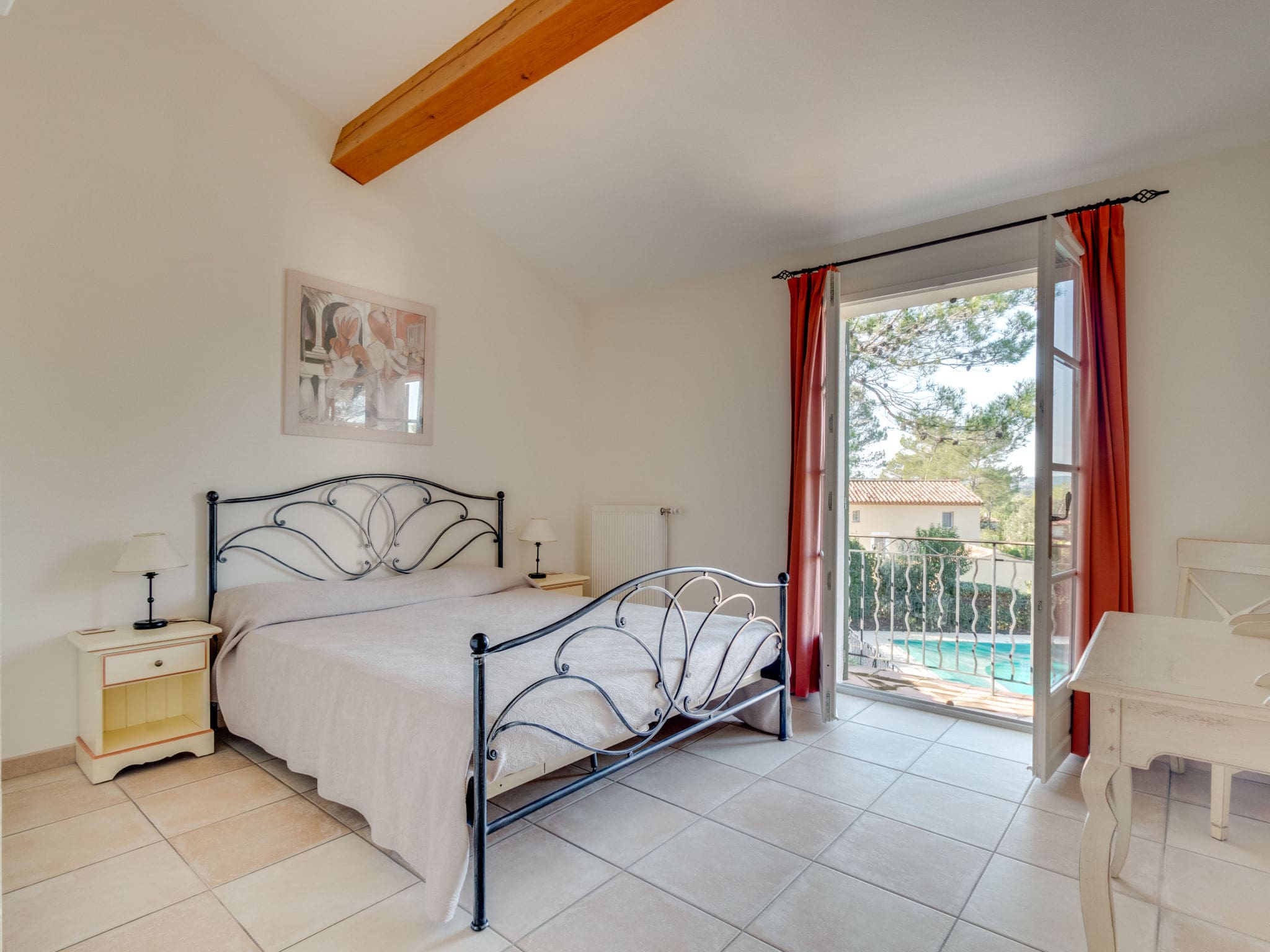 Upstairs, three additional bedrooms provide flexible accommodation options. Two twin rooms share access to a private balcony with countryside views, while a second master suite features a French bed and luxurious bath. All bedrooms include air conditioning and are thoughtfully furnished to ensure restful nights after days exploring the Provence countryside.