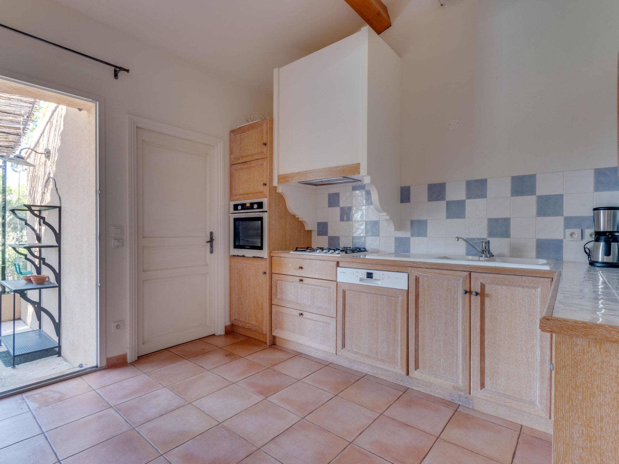 The villa’s private outdoor spaces truly set it apart, featuring a secluded 10×4 metre swimming pool available from May through October. The 500 square metre private garden provides ample space for relaxation, while the partly covered terrace offers both sun and shade options throughout the day. Comfortable outdoor furniture and deck chairs create perfect spots for al fresco dining or simply enjoying the peaceful Provençal atmosphere.