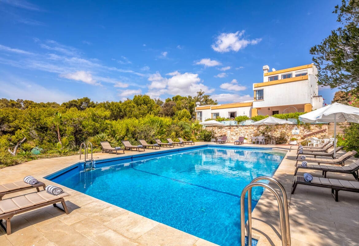 There are several locations outside to relax and chill with your guests when you exit out onto the terraces, you’ll find tables, a hammock and a further cushioned seating area towards the pool. You do have to head down stone steps in order to reach the pool, but it is worth the views and relaxation potential. The private swimming pool has a range in depth from 1m, perfect for kids and 3 meters which is excellent for the confident swimmers. With roman steps leading into the pool, and ladders in the deeper end, entering and exiting the pool is easy. This area is also surrounded by sunbeds and umbrellas, making it an excellent location for relaxing. Here is also the large garden and the gate that leads to the private path to the beach.Quinta Jordia has the unique benefit of having a direct path to the closest beach, Praia da Marinha, so you won’t have to look hard for a beach to spend time at. But Carvoeiro has some spectacular beaches along the coastline that are also available to you with a bit of travelling. Some of these locations have caves that can be searched and sea life that can be seen for those who enjoy snorkelling.