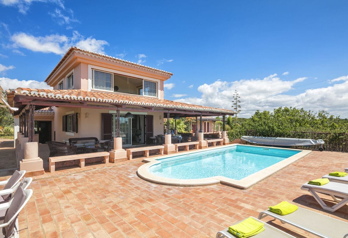 Just 500m away from one of Portugal’s (if not the world’s) most beautiful beaches, Praia da Marinha, Villa Laranja is both well equipped and enviably located. This magnificent 4-bedroom villa sits in its peaceful gardens filled with almond and fig trees and offers the use of a private 7m x 4m swimming pool.