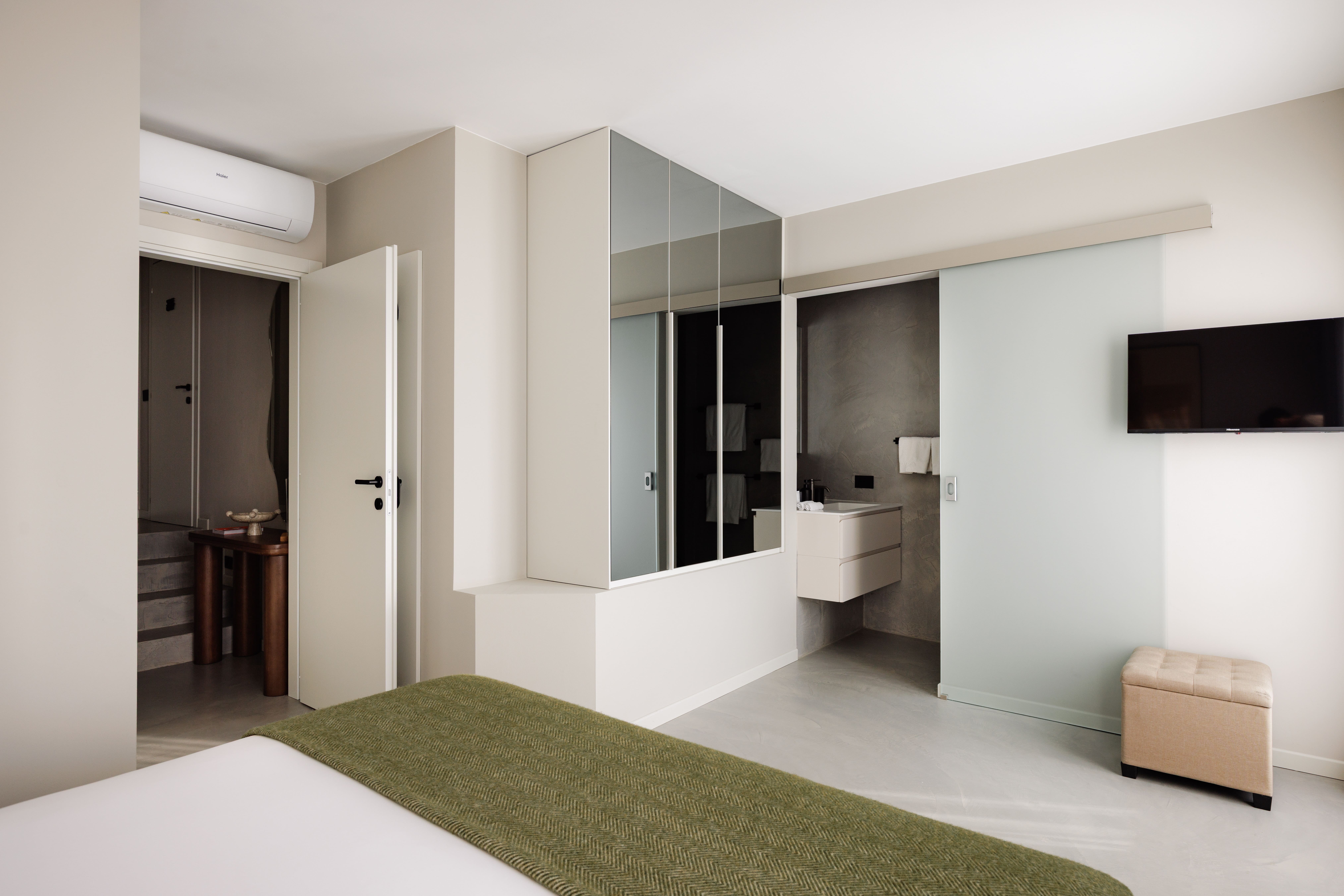 The villa’s interiors are a harmonious blend of modern design and classic Lake Como charm. Spread across three levels, the living spaces are flooded with natural light, creating an inviting atmosphere. The open-plan living area features plush seating and a contemporary kitchen equipped with state-of-the-art appliances. Each of the two bedrooms is a sanctuary of relaxation, with the master bedroom boasting an indulgent bathtub for ultimate relaxation.