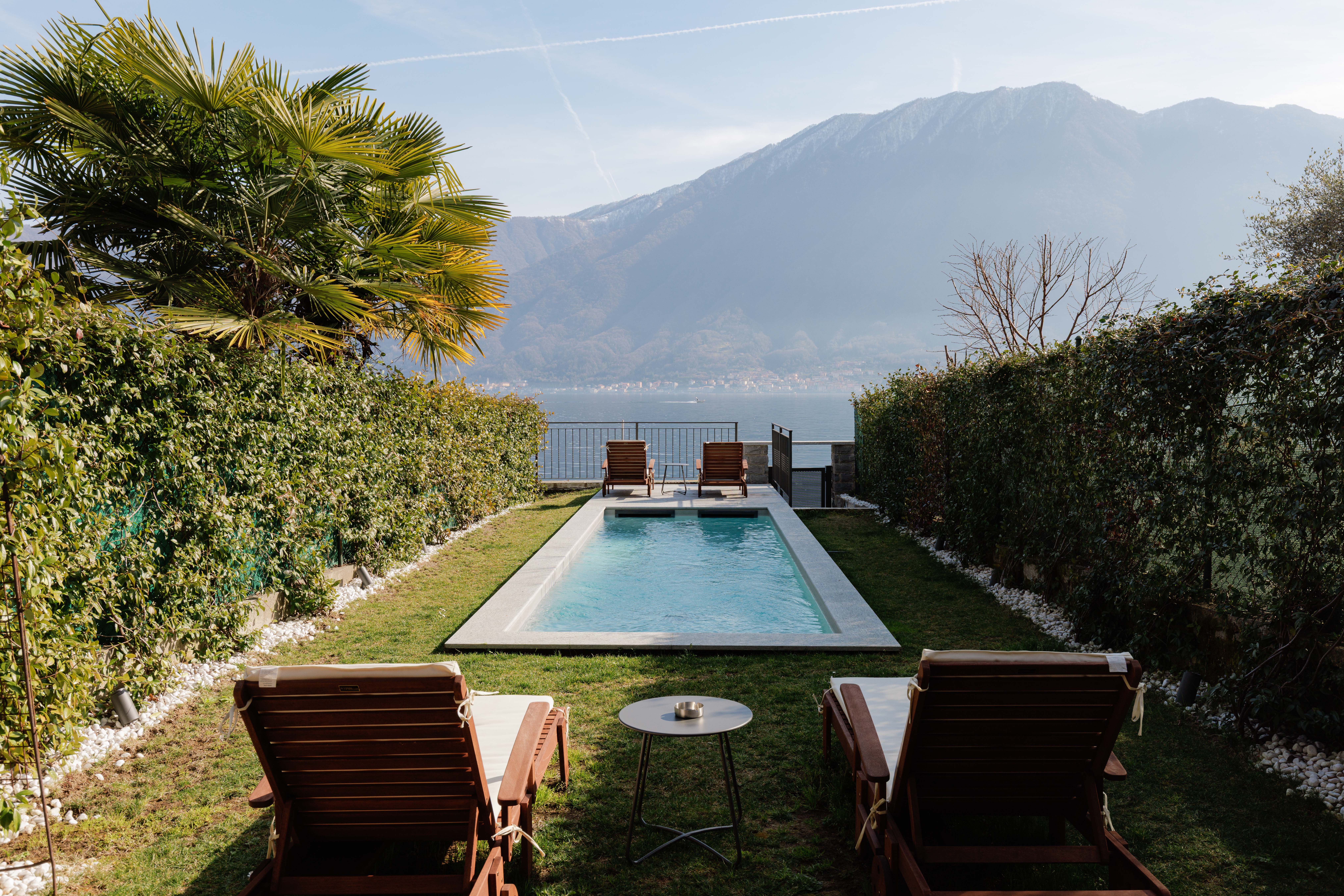 Step inside Villa Comacina Ossuccio to discover a harmonious blend of contemporary design and classic Italian charm. The spacious open-plan living area features chic furnishings and large windows that frame the mesmerizing lake views. A sleek, fully equipped kitchen invites you to indulge in culinary adventures, while the elegant curved staircase leads to beautifully appointed bedrooms. The villa’s five bedrooms are thoughtfully distributed between the main house and a separate poolside building, providing ideal accommodations for families or groups of friends.