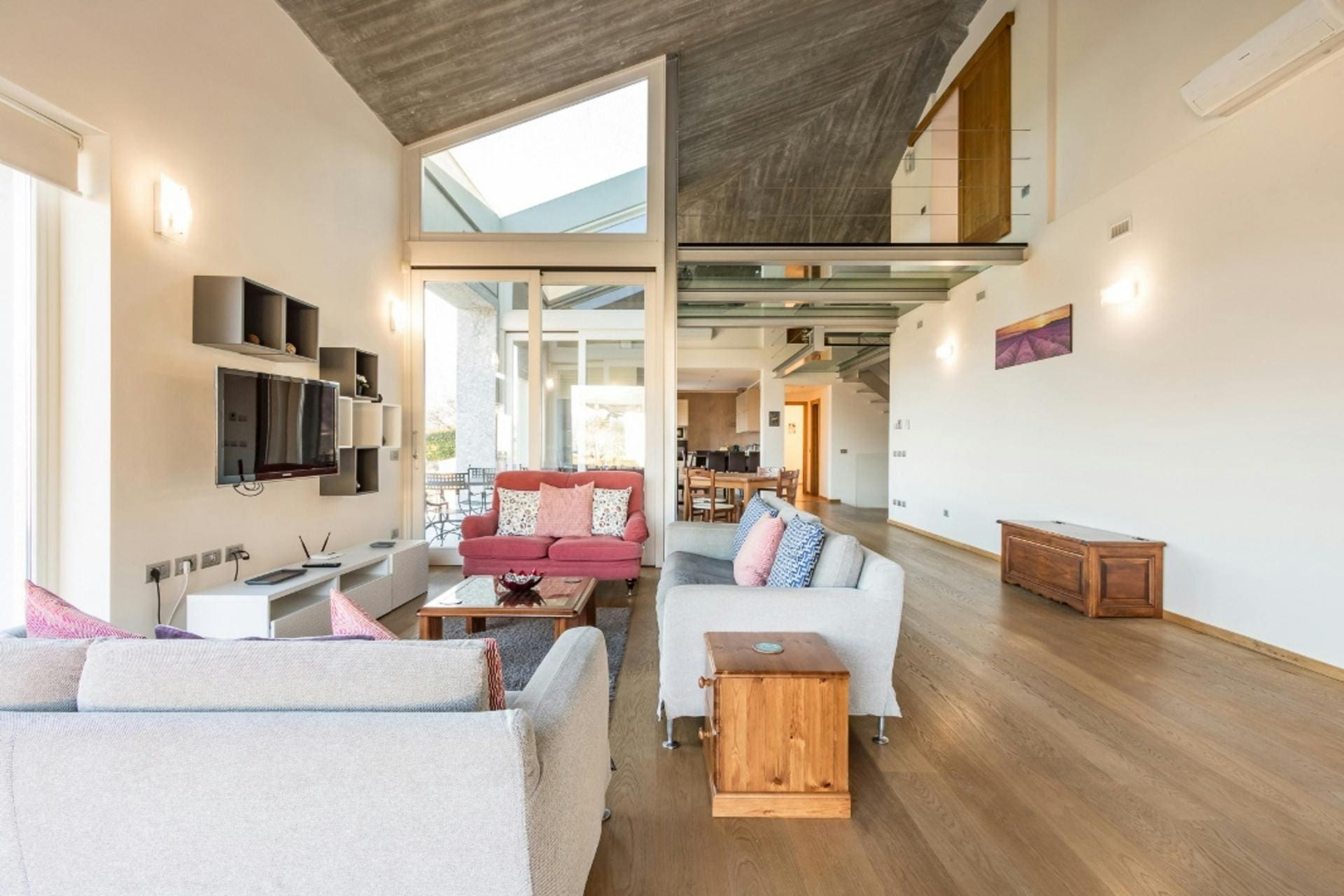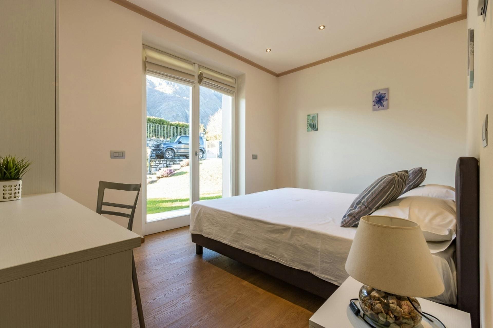 The villa’s outdoor spaces are designed for indulgence and leisure. The infinity pool offers uninterrupted vistas of Lake Como, creating a serene backdrop for swimming and sunbathing. Expansive terraces are perfect for alfresco dining, while the lush garden invites you to wander and unwind. With a barbecue setup, evenings can be spent enjoying delicious meals under the stars.