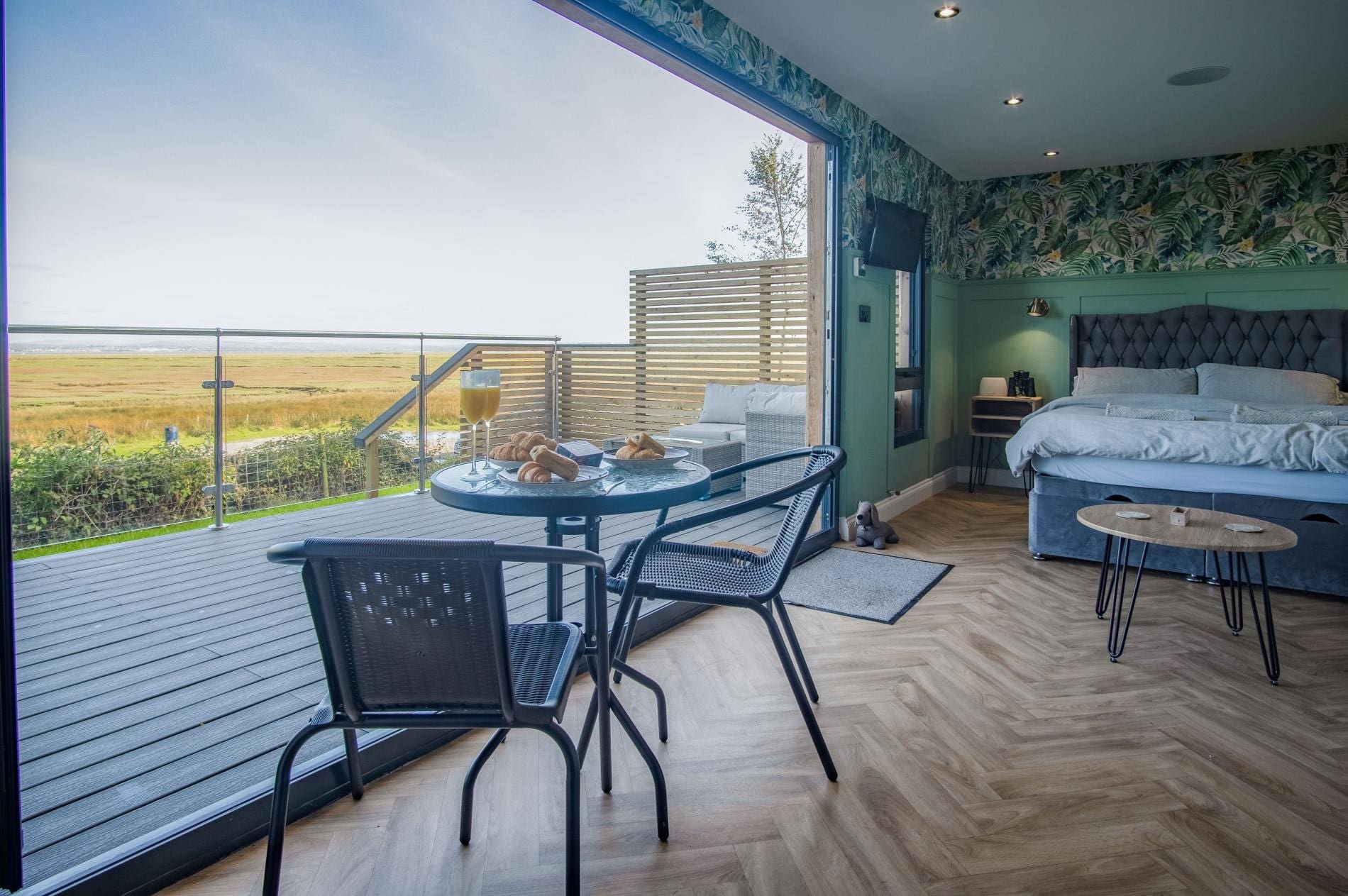 We can’t decide, you know, whether our favourite spot here is the gorgeous copper roll-top bath or the hot tub on the deck. Thinking about it, it has to be the hot tub – the views across the marshes to the bay are beautiful – enjoy them with a glass of fizz at sunset. Or watch the sky darken and reveal thousands of diamonds (if you’re a keen stargazer, you’ll be glad to know the sky around these parts is rated as class four on the Bortle Dark-Sky Scale). You can enjoy the vistas from inside too, thanks to the three-stage bi-folding doors.