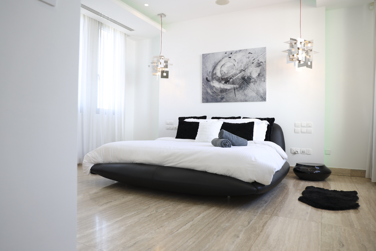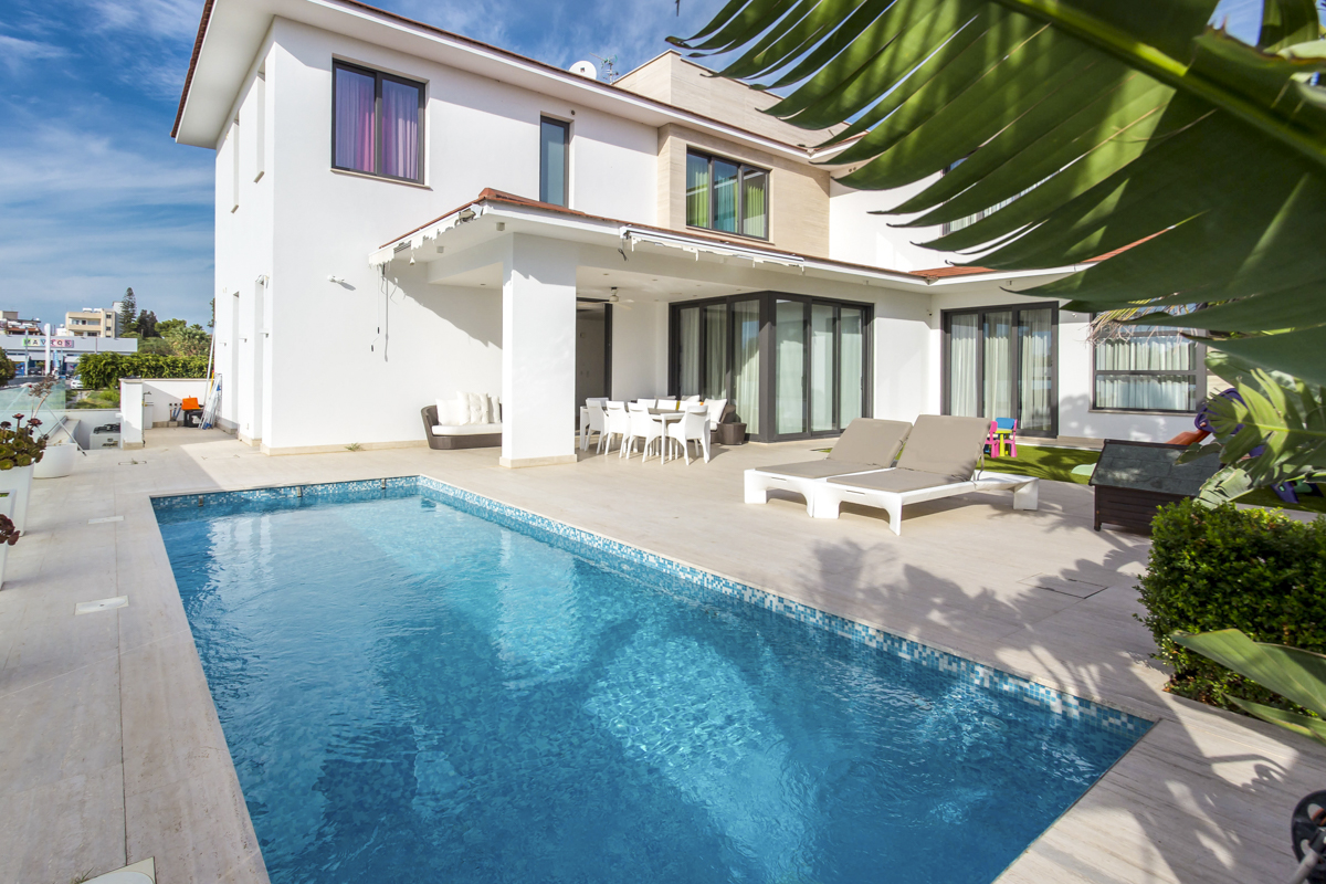 Relax in style and modernity in the outstanding Villa Patticheio. This six-bedroom villa in Larnaca is perfect for large or extended families and multiple groups of travellers! Unwind with pizzazz in exquisite interior and immaculate exterior spaces, complete with sea views! Outdoors, immaculately laid exteriors invite guests to kick back and relax under the sway of palm trees. Indoors the finest contemporary décor and furnishings have been laid across sleek and clean-lined spaces. Hosting a whopping six bedrooms, you can even bring over the extended family for a breakaway from the mundane! The lounge is bathed in the glorious island sunlight, courtesy of floor-to-ceiling windows and patio doors! At night, it is softly illuminated by coloured ceiling lights, adding to the elegance of this area. The seats are chicly designed, and there’s more than enough room for the whole family to come together and enjoy a movie or two on the settee! In this wonderfully open-plan room, guests can bring food and drinks to serve on the massive dining table which accommodates the full capacity of this villa! To finish-off this complete communal area, you are offered the opportunity to make use of a sleek, fully-equipped kitchen! Whether you simply want to store refreshments for your stay or make a full-blown feast, you have everything you need and more! Six bedrooms are set across three floors in this amazing villa! Even those with mobility issues will have no trouble getting around in this villa with the inclusion of a lift which runs from the basement up to the first floor! Choose from six bedrooms across the three floors, five with super king-size, king-size and double beds and en-suite bathrooms with jacuzzi baths and a sixth in the attic, with two single beds. The interiors even offer saunas and steam rooms in the master bedroom, and sweeping views from the attic bedroom’s veranda! Villa Patticheio helps those who need to stick to their workout regimes the chance to do so with a gym in the dwelling! When you are done, jump straight into the divine outdoor pool! Dry off after your soak on cushioned sun-loungers and sofas on the patio and head over to the alfresco dining table to enjoy a beautiful meal to finish or start days of joy!The third-largest island on the Mediterranean Sea, Cyprus is a sun-soaked outlet, offering tonnes to do, eat and see! Throw in outstanding beaches, and you have a destination well worth the visit! Villa Patticheio sits in the south of the island and offers peace and tranquillity when you retreat home as well as access to Larnaca centre, which is a short drive away! The villa is located just a few metres from the vast Larnaca Salt Lake. Not too far from the villa, from November to March, you can spot flamingos in the area. This beautiful image against a sunset makes for a stunning photography occasion! Larnaca and its sunny beaches are less than a 10-minute drive from the villa. Larnaca surprisingly boasts a whole range of cultural and historical sites for you to explore or have fun in! Visit the Municipal Art gallery or the Pierides Museum for a taste in the local culture. The famous and central beach of Finikoudes sits between the picturesque marina and the medieval castle of Larnaca. At night Larnaca bursts into life with places to drink and chatter into the early hours of the morning or places to swing, hip-shake and boogie down in the town and seafront until the sun comes up!