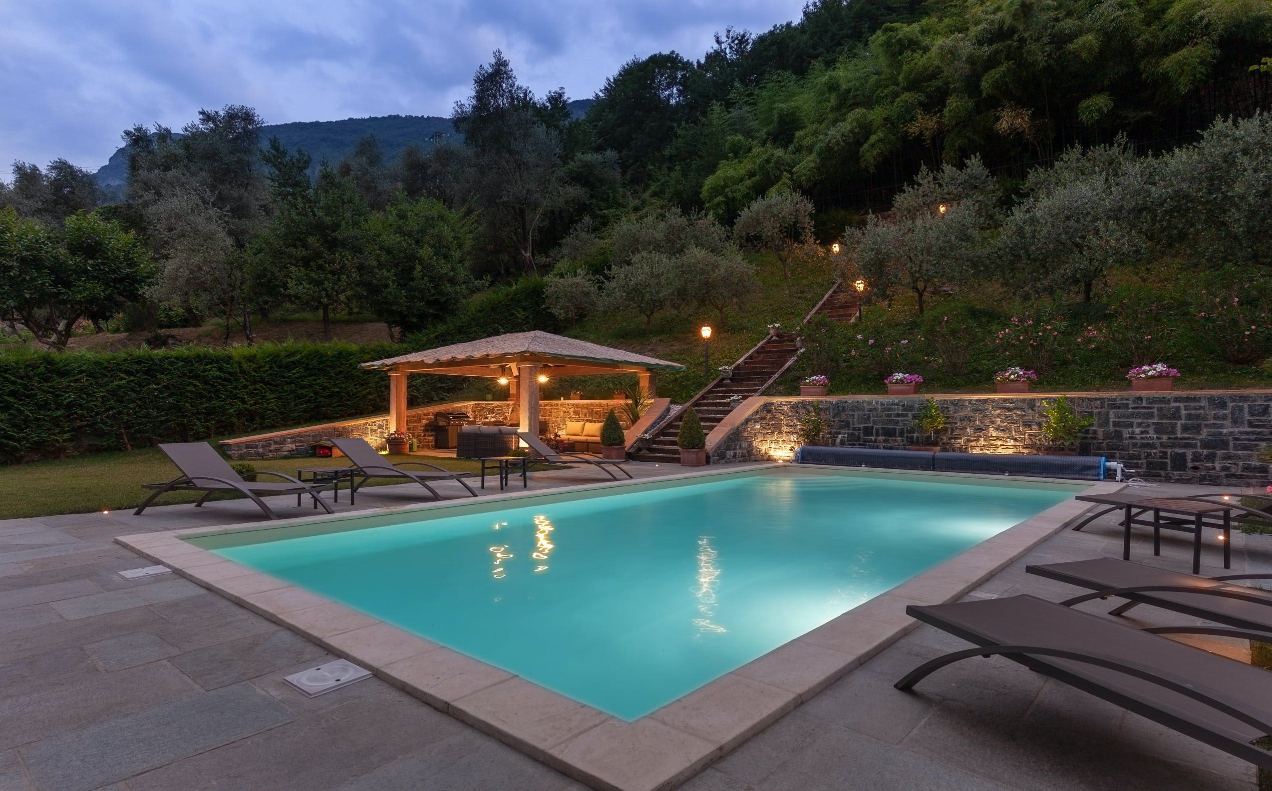 This luxury villa rental in Como features four bedrooms, three bathrooms, and can host up to ten guests. Parking is convenient with a garage that fits two cars. Note that the pool area is unfenced, so children will need supervision. Pets are welcome with prior arrangement. For more options, browse our luxury villa rentals in Italy.