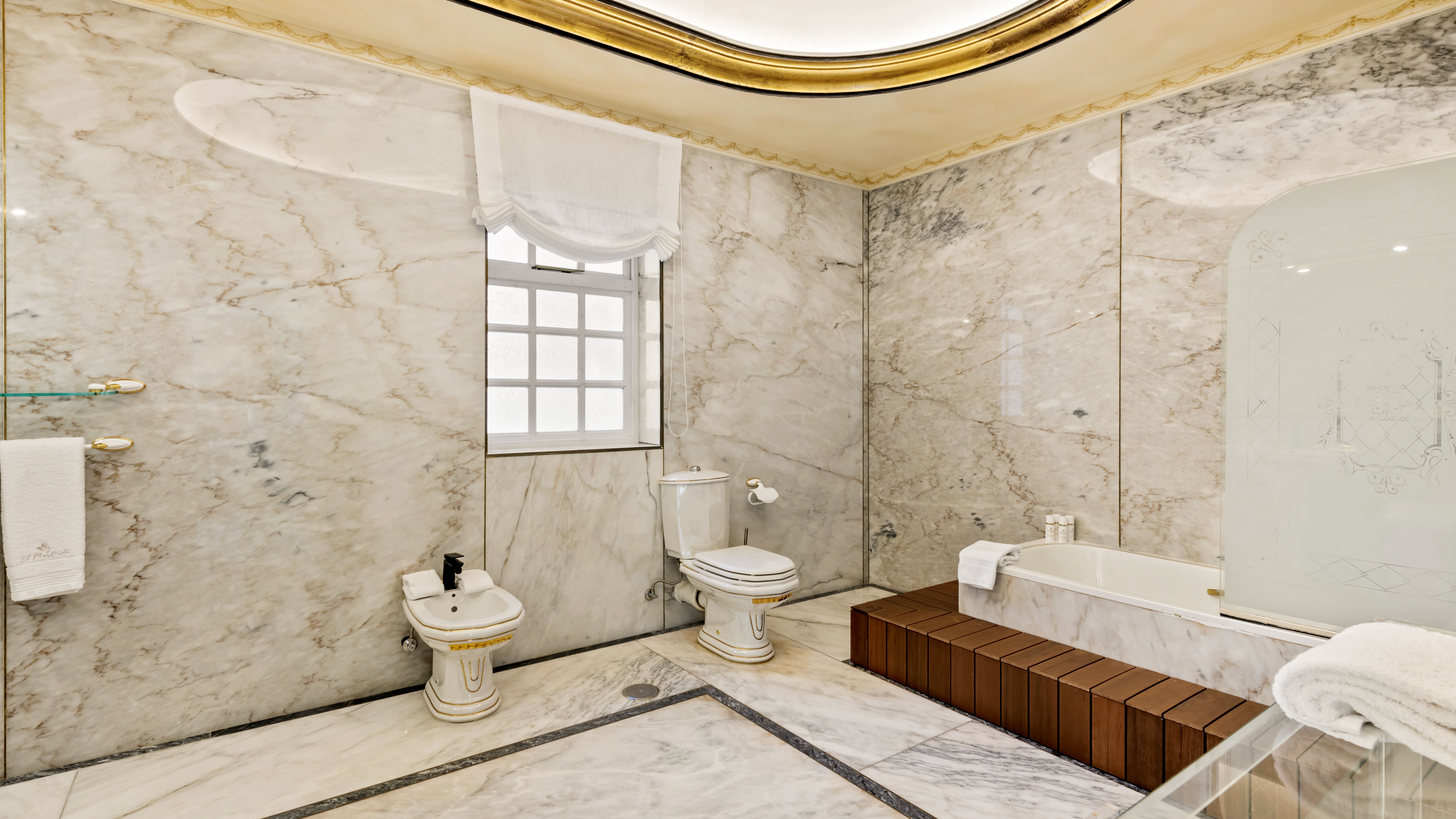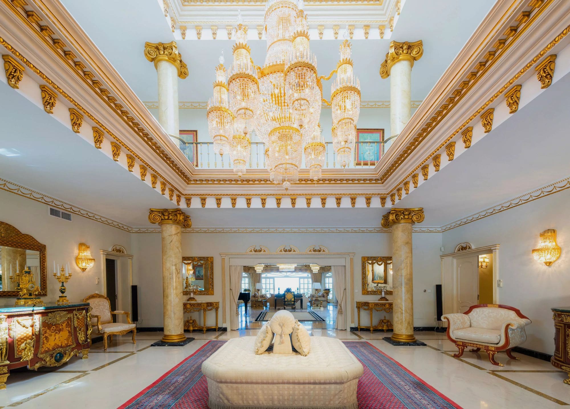 Step into a world of opulence as you enter the grand living spaces of this Marbella villa. The interiors are a testament to classic elegance, featuring marble pillars, soaring ceilings, and an impressive chandelier. Each of the six en-suite bedrooms within the main villa exudes comfort and style, complemented by additional accommodations in two separate guesthouses. The fully-equipped gym, sauna, and indoor pool ensure guests enjoy both relaxation and rejuvenation during their stay.