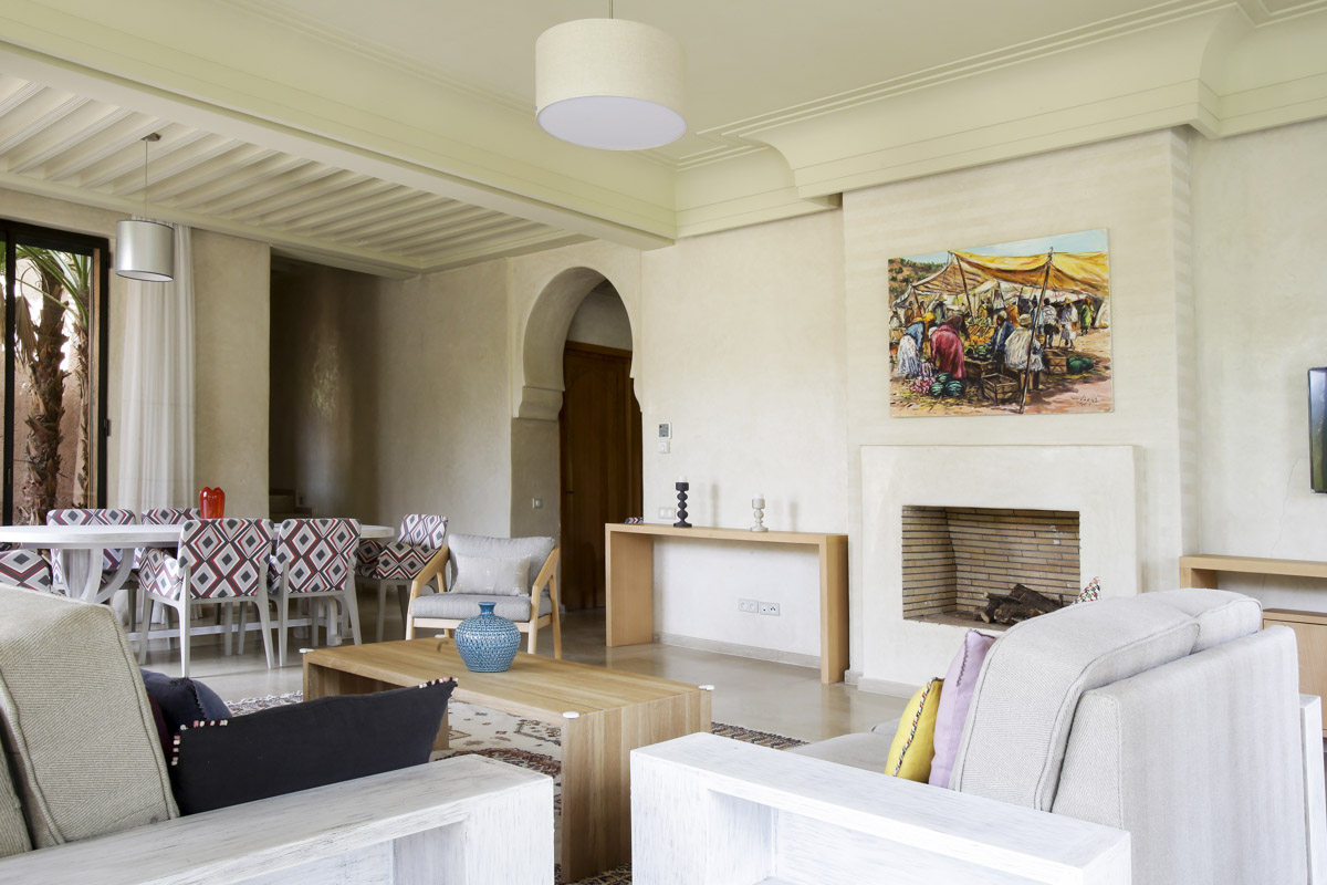 Outside of the bedrooms, the home also has a sizeable lounge with cosy sofas, a warm fireplace and a TV. There is also an indoor dining area and well-equipped kitchen providing guests with an excellent opportunity to try their hands at traditional Moroccan cuisine, including some local spices which can be picked up at the local Souk.