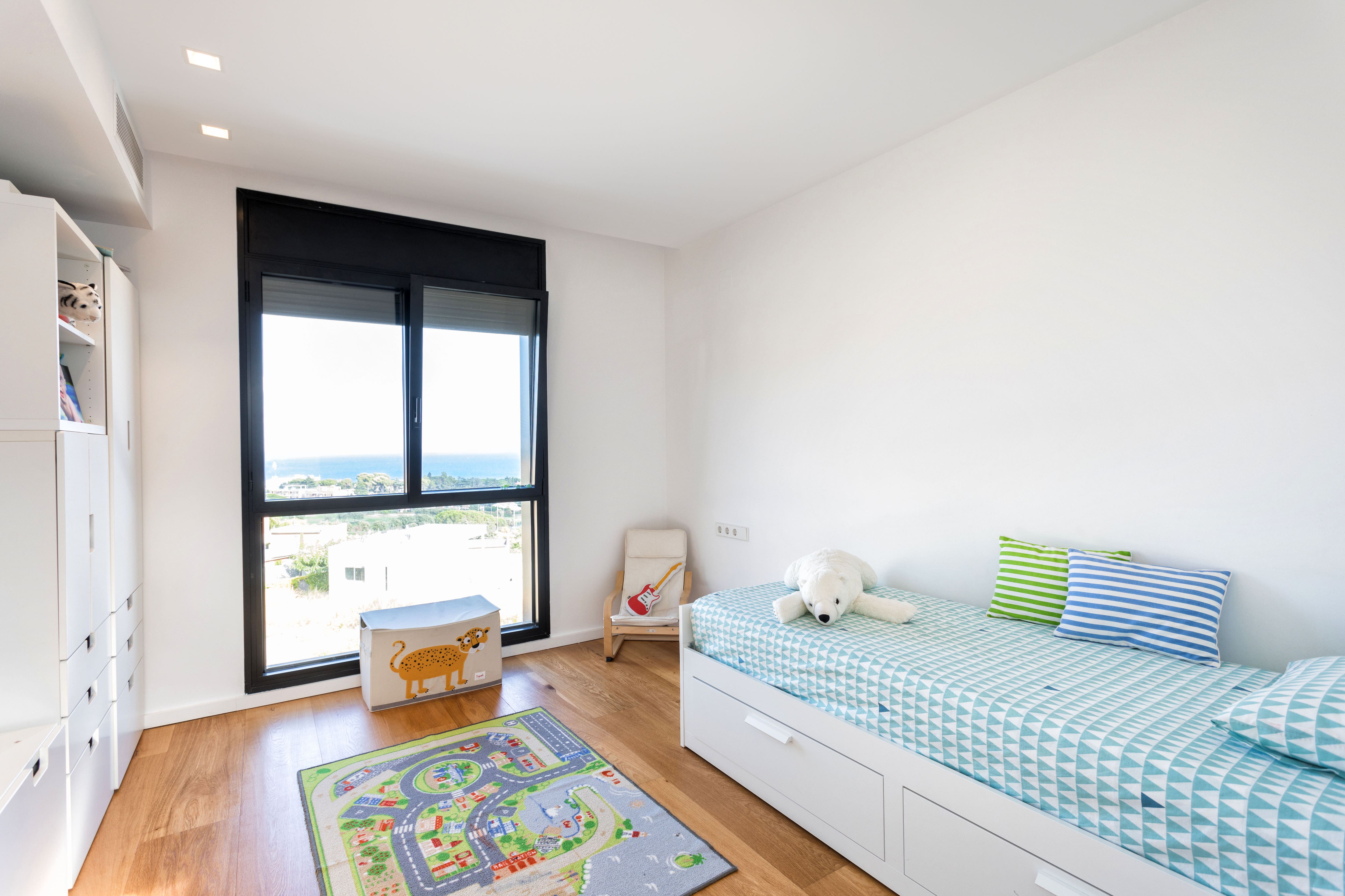 Step inside this exquisite villa to find a modern, open-plan design across three floors, perfectly crafted for comfort and style. The villa features five well-appointed bedrooms and four luxurious bathrooms, providing ample space for up to 12 guests. The interior boasts contemporary furnishings, a fully equipped kitchen, and spacious living areas, making it an ideal setting for families and groups of friends. Additionally, the villa is equipped with air conditioning, ensuring a pleasant stay during warmer months.