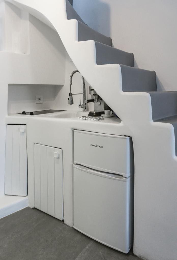 Follow the steps up to the interiors, where understated minimalism is on the menu. White shutters, walls, furniture, and kitchen fittings bolster this theme. Make yourself an espresso to take with you up to the next level for a smorgasbord of sophistication and style.