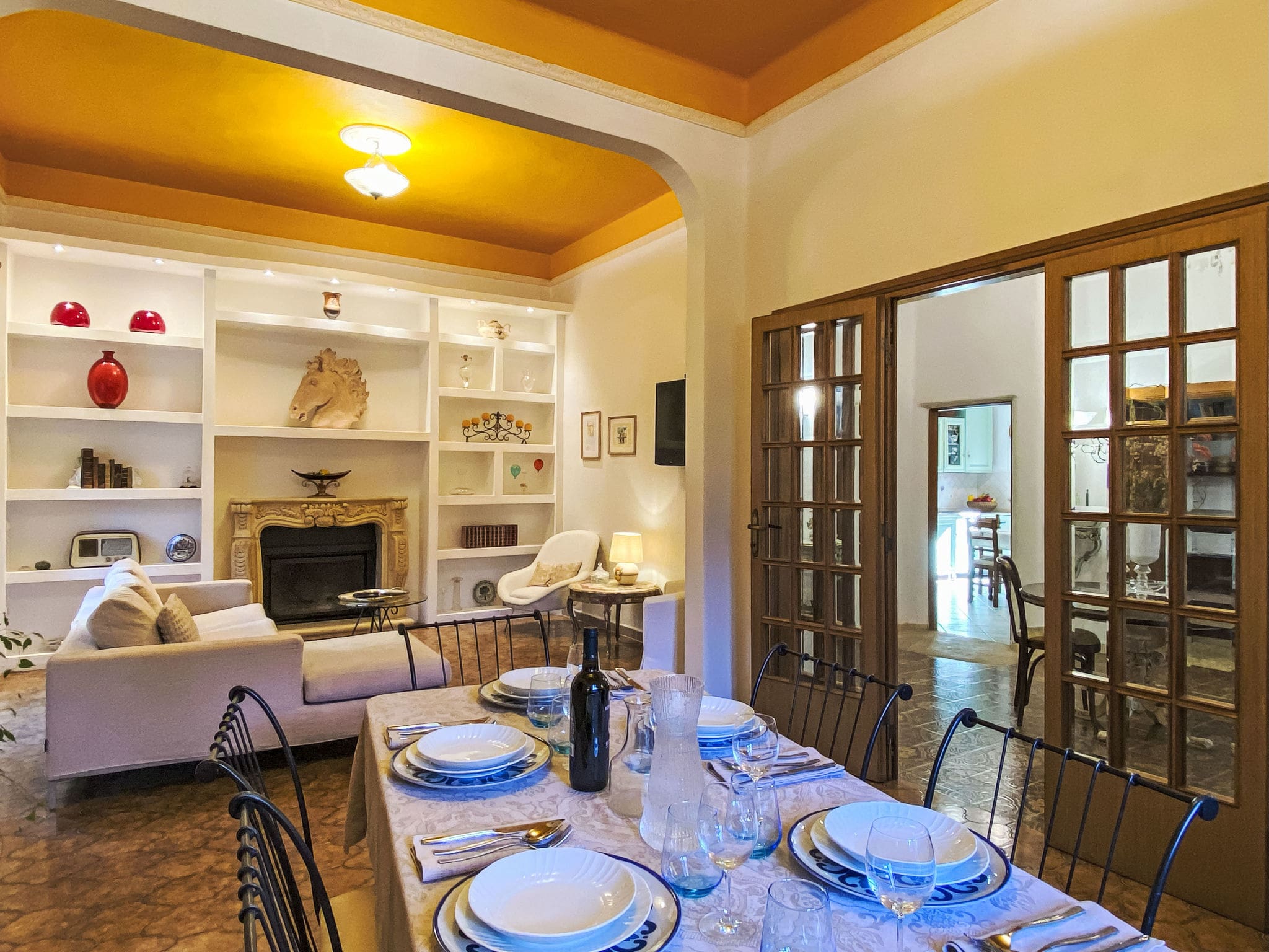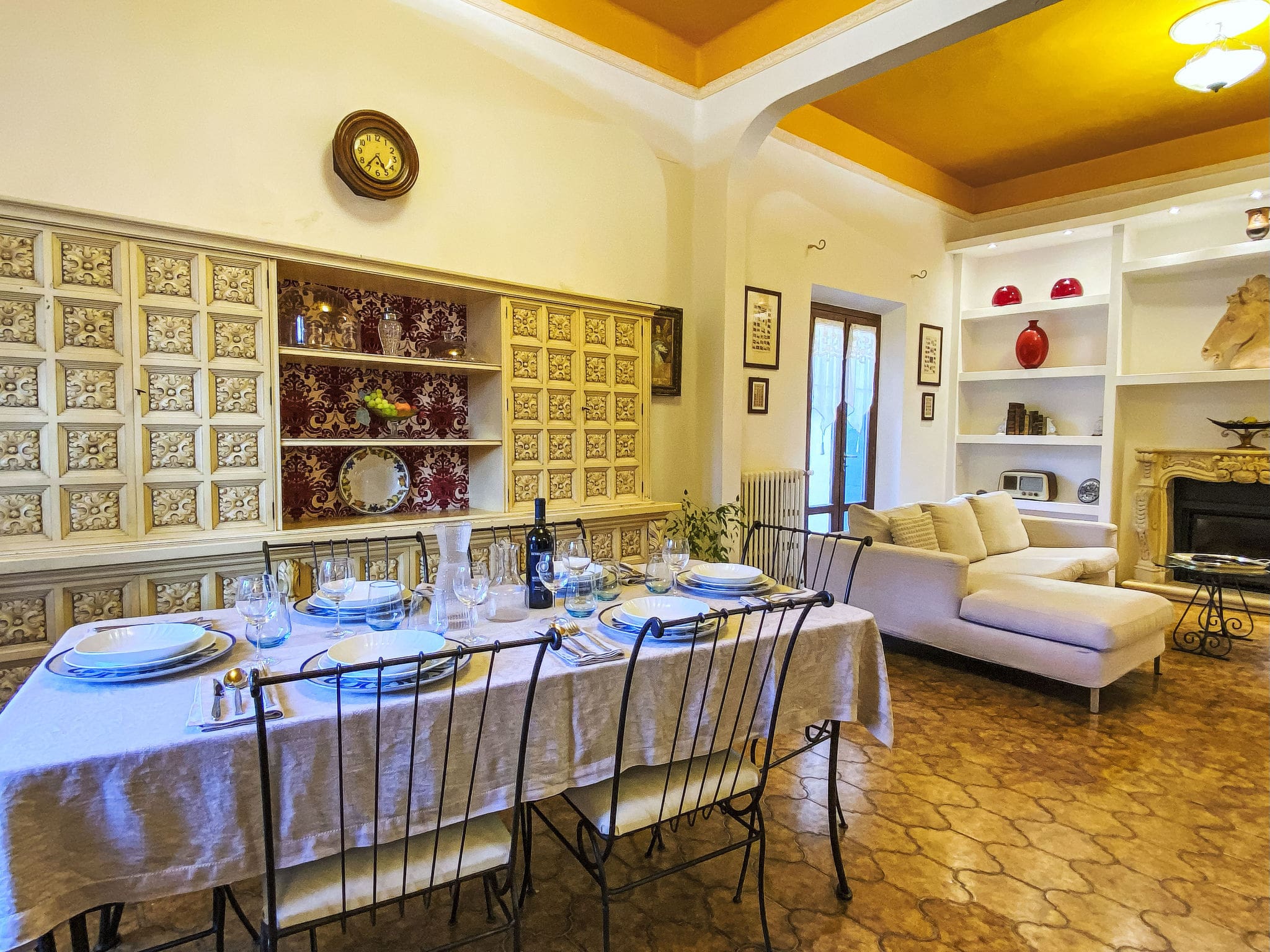 Spanning 200 square metres across two carefully designed levels, this historic property seamlessly blends traditional Tuscan architecture with contemporary amenities. The ground floor welcomes guests with a spacious living and dining area featuring an impressive open-hearth fireplace and well-stocked library, creating the perfect atmosphere for relaxing evenings. The thoughtfully designed layout flows naturally to a bright kitchen-living room equipped with premium appliances including a gas stove, dishwasher, and microwave, opening directly onto a delightful loggia for al fresco dining.