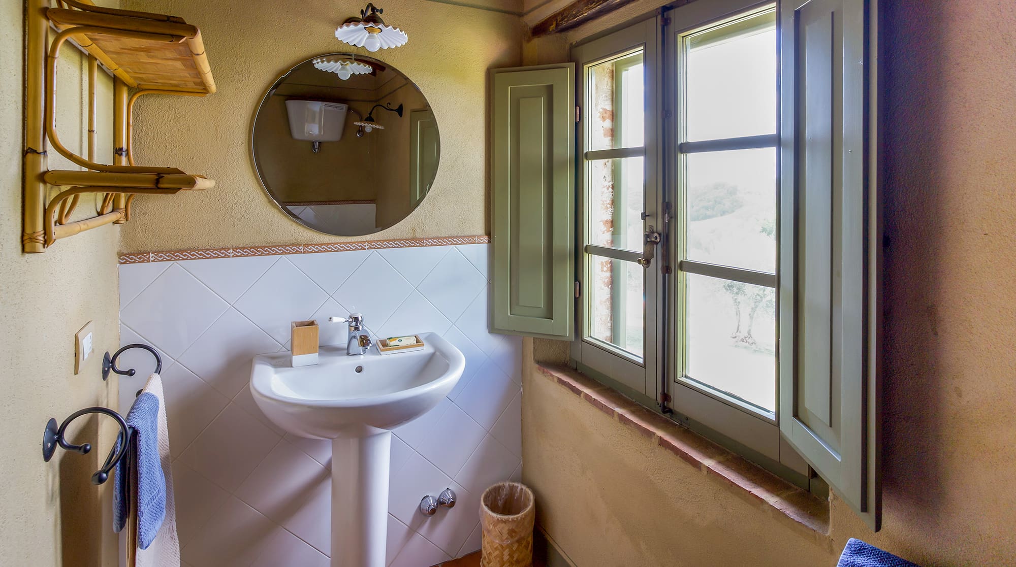Surrounded by lush olive groves and rolling hills, the villa’s outdoor spaces are a haven of tranquility. Enjoy a refreshing dip in the fenced swimming pool, or relax on the sun loungers under the Tuscan sun. The poolside loggia, complete with a kitchenette and barbecue, offers the perfect setting for al fresco dining, while the covered terrace provides a shaded retreat for leisurely afternoons.