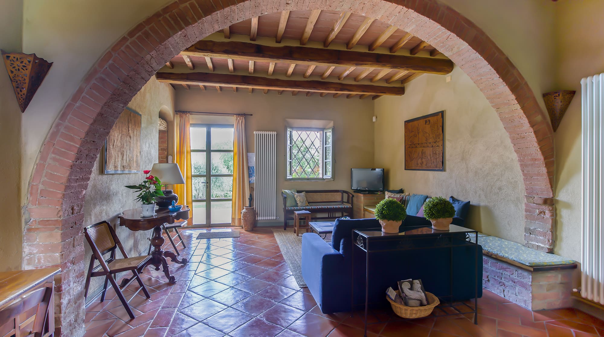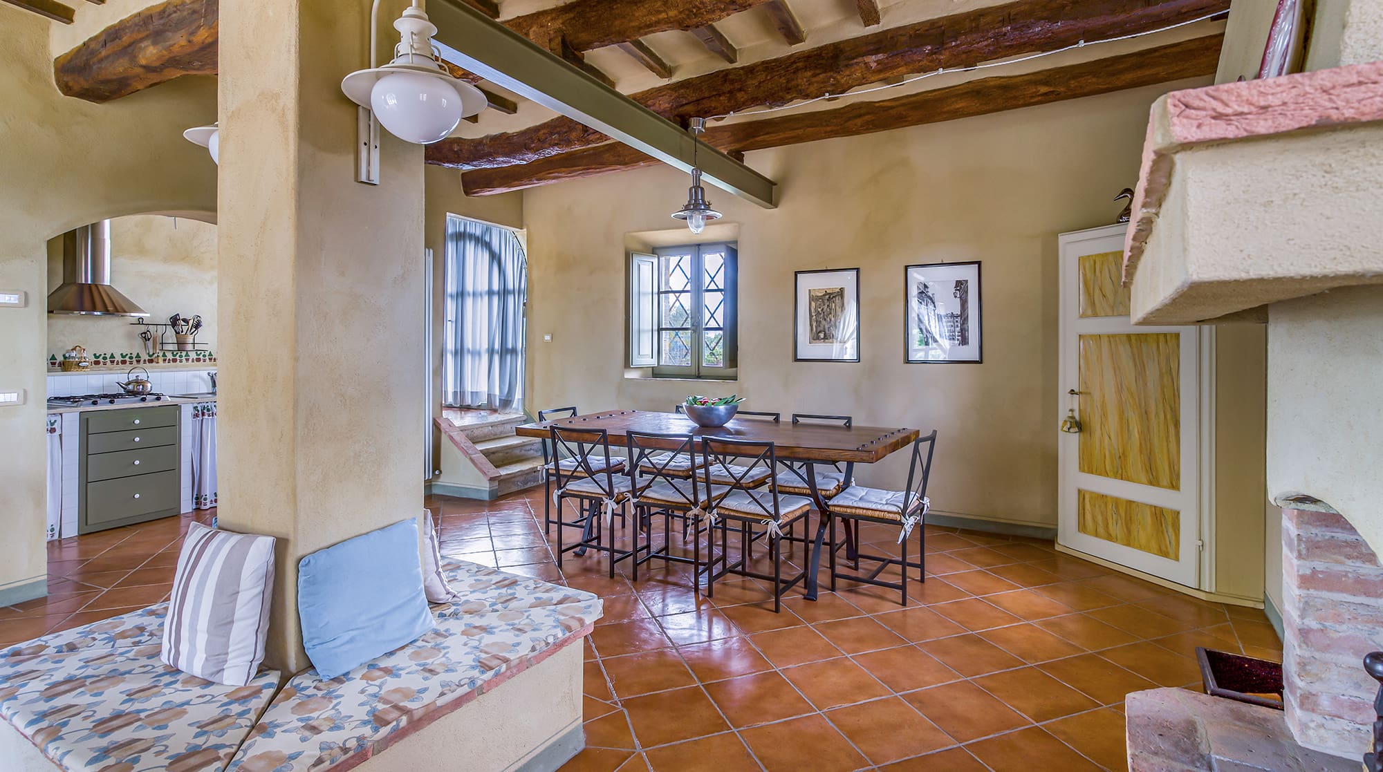 Step into a world of timeless beauty as you enter this Tuscan villa. The interiors are a testament to classic Italian design, featuring tiled floors, chestnut beams, and charming archways. The property boasts two spacious living areas, each equipped with a kitchen and dining table, allowing for flexible dining arrangements. The villa accommodates up to ten guests across five exquisite bedrooms, each with its own en-suite bathroom, ensuring privacy and comfort for all.