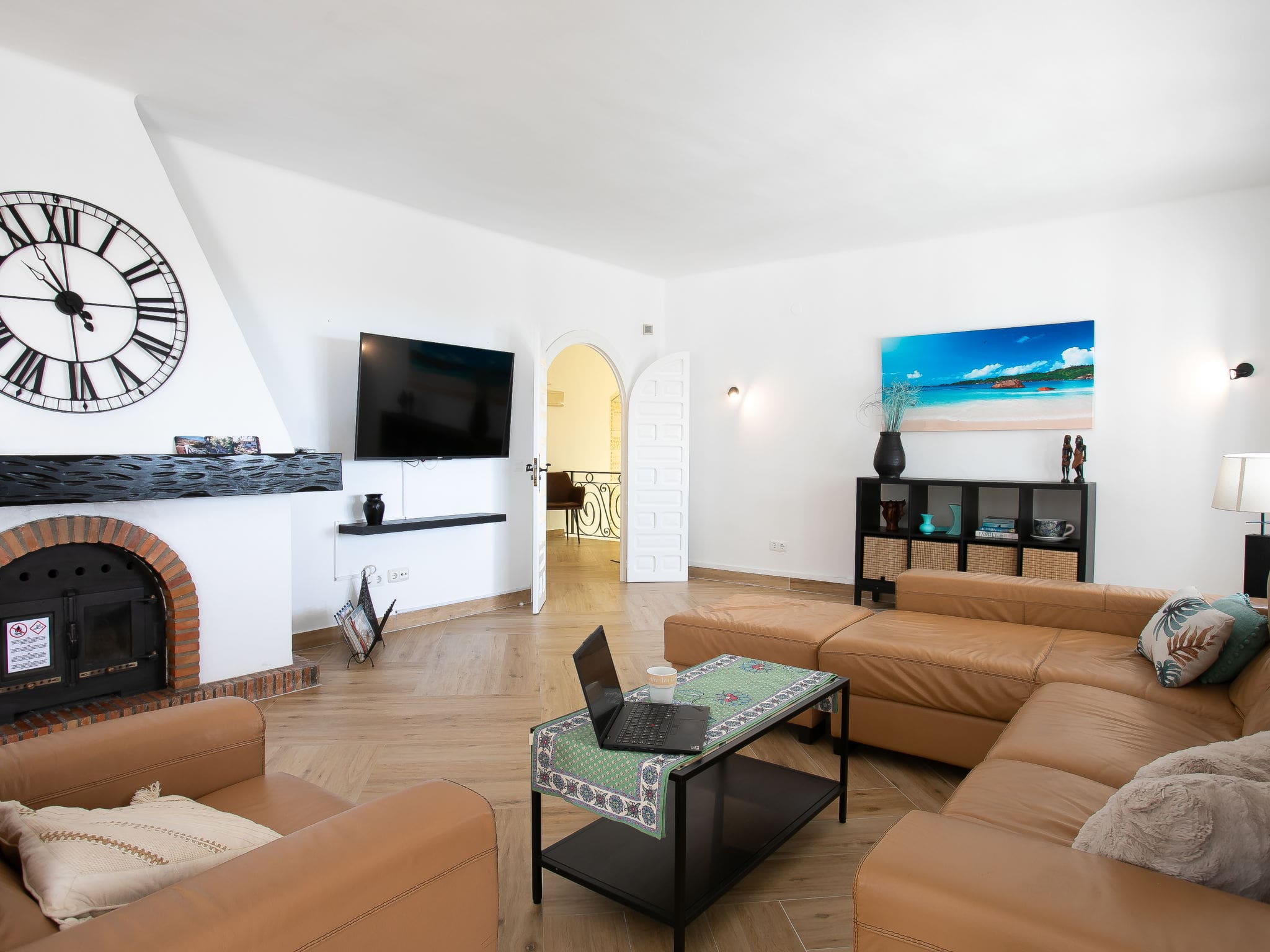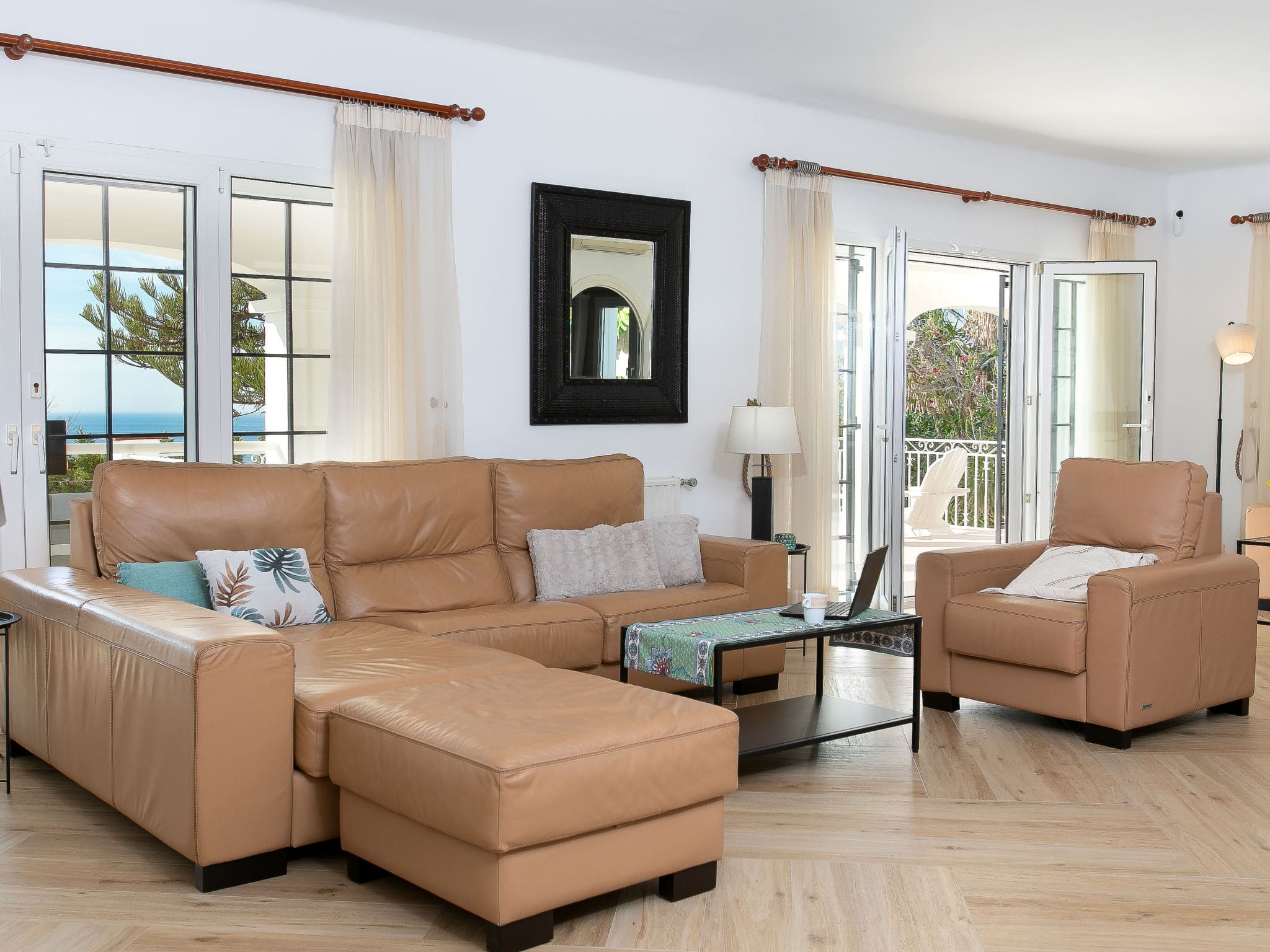 Air conditioning throughout most bedrooms ensures comfortable sleeping during warm Andalusian summers, while the villa’s elevated position captures cooling sea breezes. Multiple living areas mean everyone can find their perfect spot, whether socializing together or enjoying quiet moments.