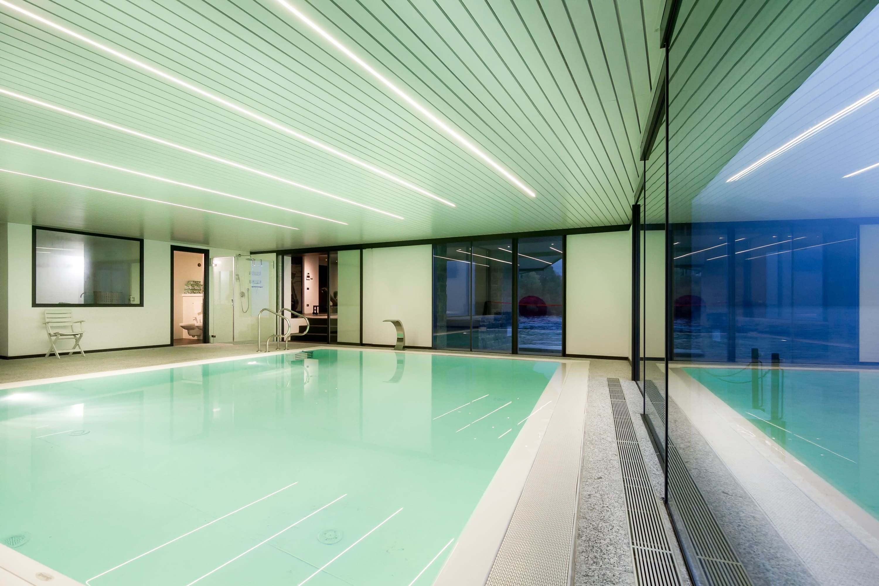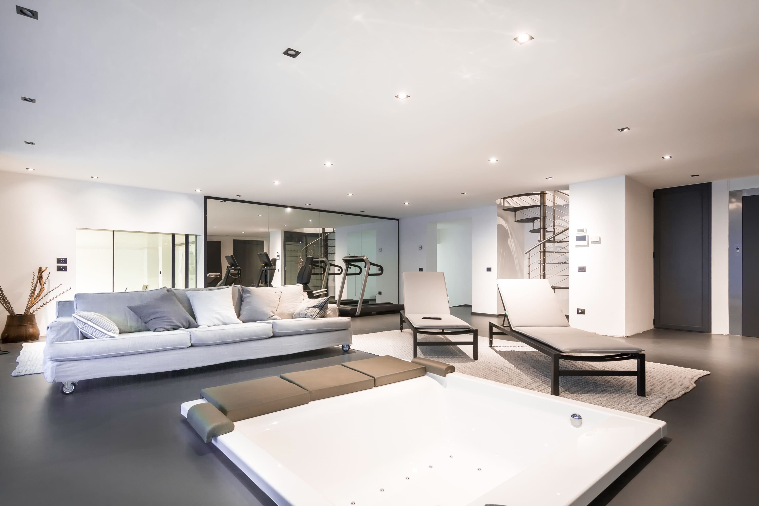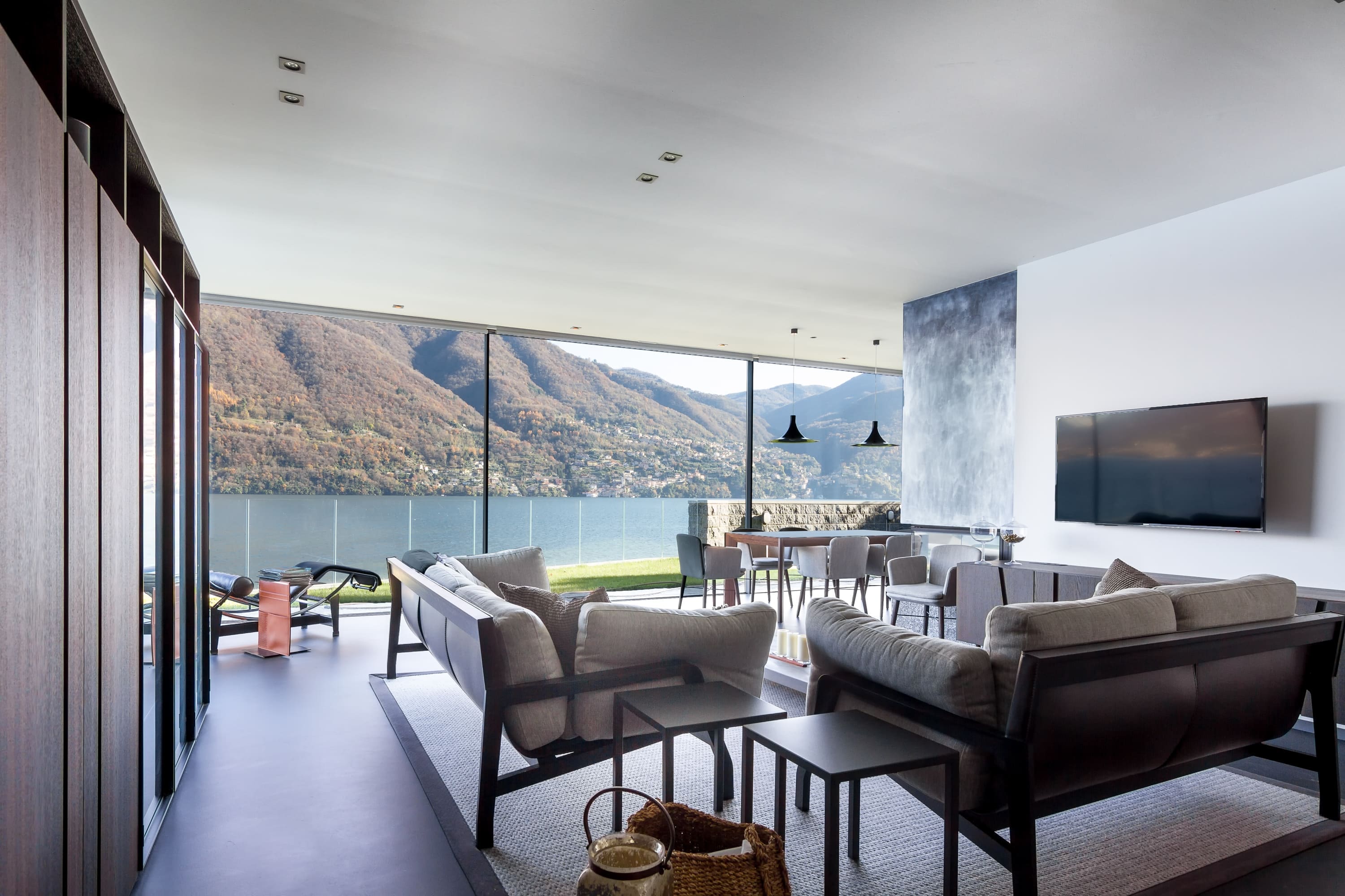 The villa’s outdoor spaces are a haven for relaxation. Enjoy the private swimming pool, where you can take a refreshing dip while soaking in the stunning lake views. The spacious terrace is perfect for al fresco dining, with a backdrop of the majestic mountains. The hot tub and sauna provide additional opportunities for indulgence and rejuvenation, making this villa a true sanctuary.