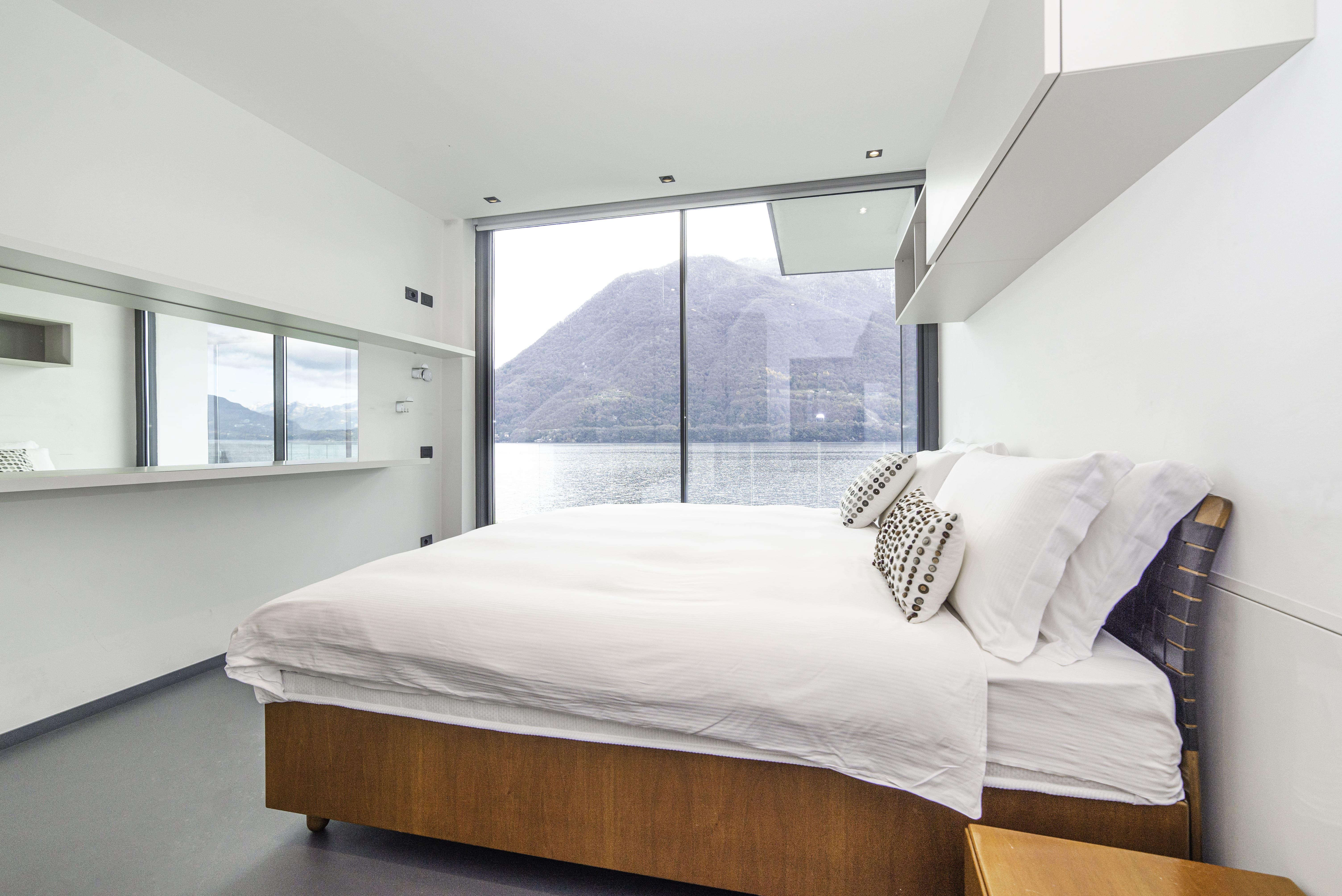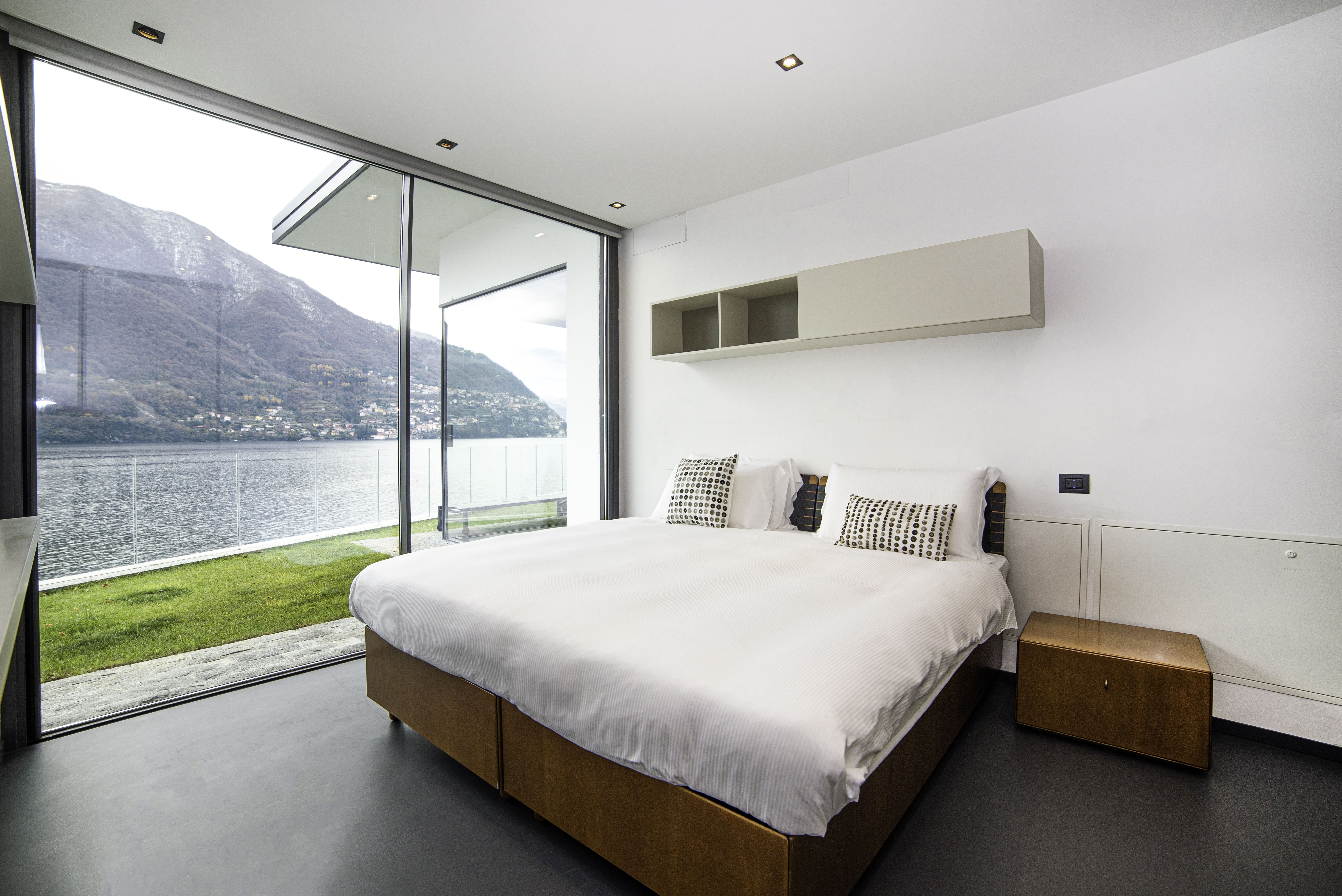 Step into a world of refined elegance as you explore the villa’s interior. The living spaces are filled with natural light, thanks to floor-to-ceiling windows that frame spectacular views of Lake Como. The open-plan living area is tastefully furnished with plush seating and contemporary decor, creating a cozy atmosphere for relaxation. The state-of-the-art kitchen is equipped with modern appliances, making meal preparation a delight. The villa features three luxurious bedrooms, each designed for comfort. The second bedroom includes bunk beds ideal for children or teenagers, while the third bedroom offers a king-sized bed that can be arranged as two singles upon request.